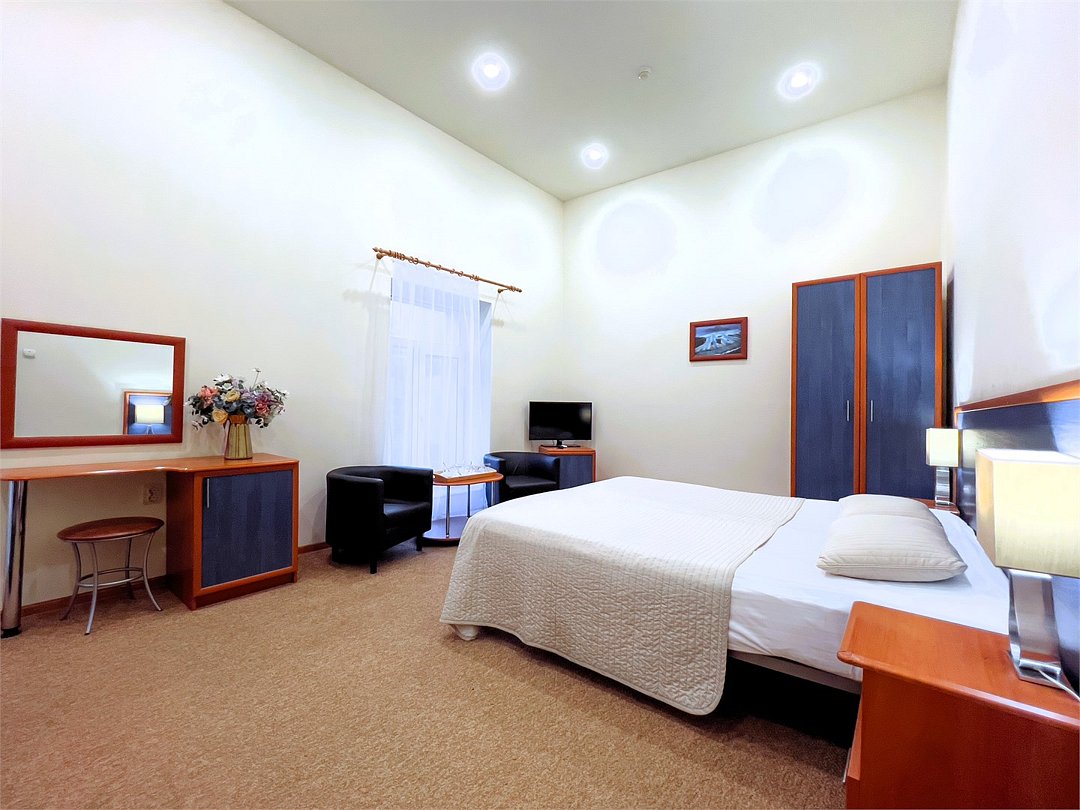 Отель «Фрегат -1» готов предложить гостям однокомнатный номер, который идеально подходит для двух гостей. Площадь номера 16 кв. м, что обеспечивает свободное пространство и уютную обстановку. Дети до 5 лет могут проживать в номере бесплатно. Номер оформлен в классическом стиле, что создает атмосферу уюта. В номере имеется все необходимое для удобного времяпровождения, включая удобную мебель, кондиционер, телевизор , холодильник, Wi-Fi, фен, полотенца. Номер оборудован полноценной ванной, что придает особую роскошь отдыху! Идеальный выбор для людей, ценящих максимальный комфорт.Услуги и удобства