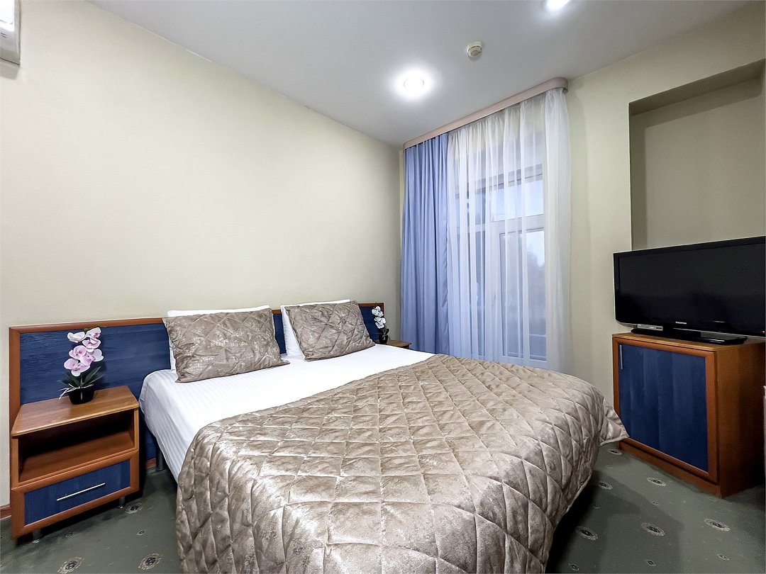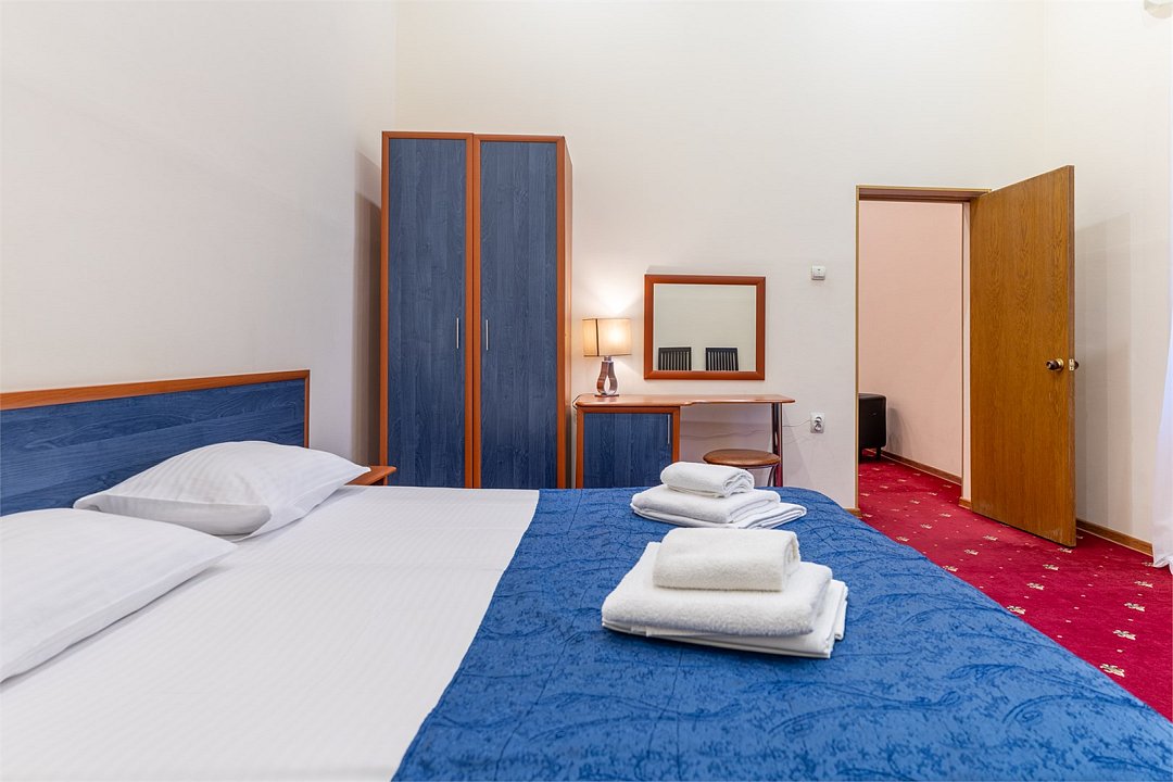 Отель «Фрегат -1» готов предложить гостям двухкомнатный номер категории "Делюкс", который подходит для размещения до четырех гостей. Площадь номера до 30 кв. м, что обеспечивает свободное пространство и уютную обстановку. Дети до 5 лет могут проживать в номере бесплатно. Номер оформлен в классическом стиле, что создает атмосферу уюта. В номере имеется все необходимое для удобного время препровождения, включая удобную мебель, кондиционер, телевизор , холодильник, Wi-Fi, фен, полотенца. Номер оборудован полноценной ванной, что придает особую роскошь отдыху! Идеальный выбор для людей, ценящих максимальный комфорт.Услуги и удобства