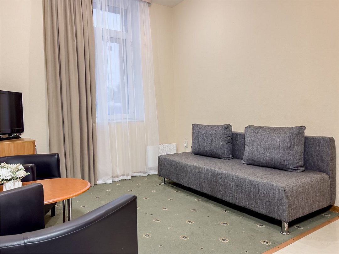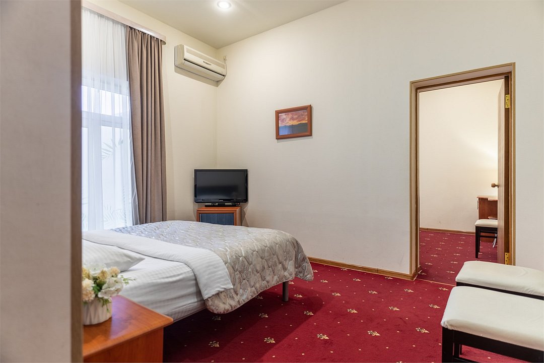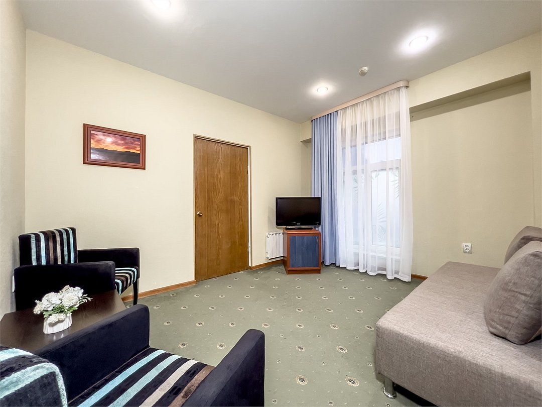 Отель «Фрегат -1» готов предложить гостям трехкомнатный номер категории "Сюит", который подходит для размещения до шести гостей. Гостиная и две спальни. Площадь номера до 60 кв. м, что обеспечивает свободное пространство и уютную обстановку. Дети до 5 лет могут проживать в номере бесплатно. Номер оформлен в классическом стиле, что создает атмосферу уюта. В номере имеется все необходимое для удобного время препровождения, включая удобную мебель, кондиционер, телевизор , холодильник, Wi-Fi, фен, полотенца. Номер оборудован полноценной ванной, что придает особую роскошь отдыху! Идеальный выбор для людей, ценящих максимальный комфорт.Услуги и удобства