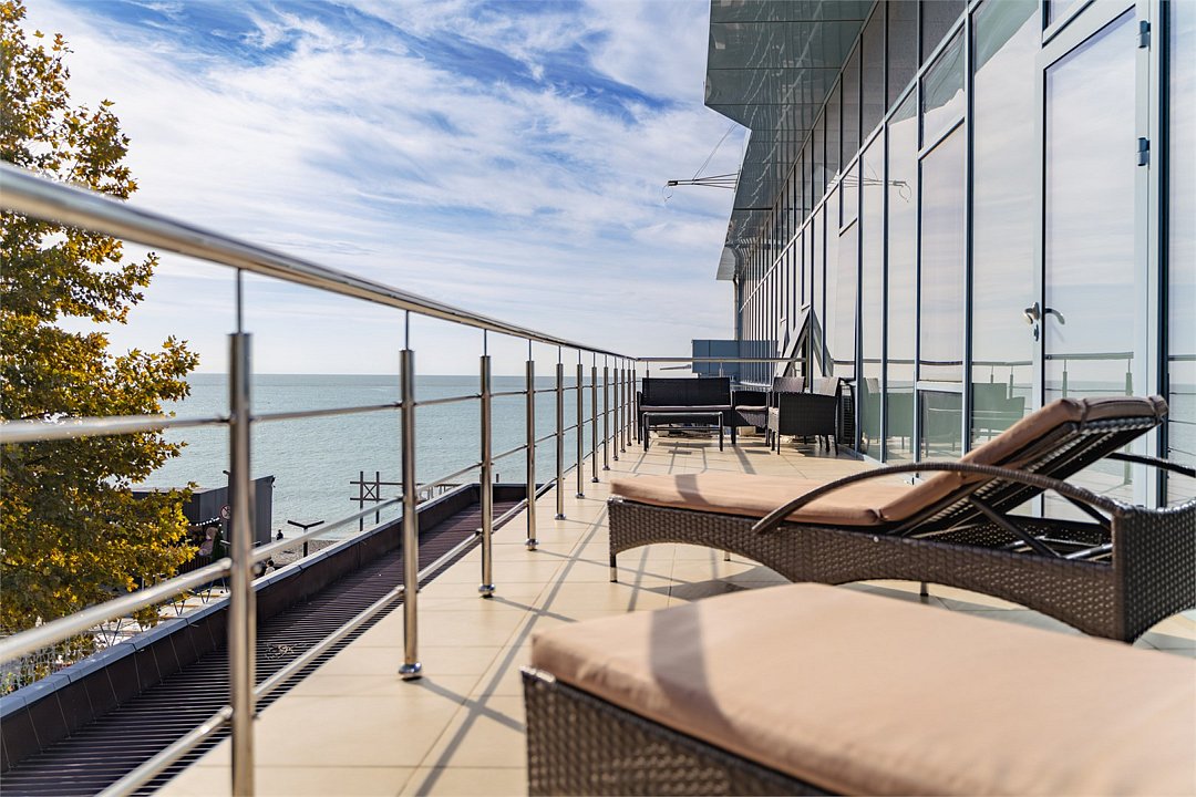два телевизора, кабельное телевидение, Wi-Fi, фен, утюг, ванная комната, ванна, банные полотенца, тапочки, балкон, балкон с красивым видом, балкон с шезлонгом, терраса, две односпальные или большая двуспальная кровать, гладильная доска, диван, кресла, тумбы, шкаф для одежды, вешалки, журнальный столик, багажная тумба, зеркало, две комнаты, стиральная машина, чайник, унитаз, раковина, гостиная зона, ковровое покрытие, вид на море, плиточное покрытие, кресло, две спальни, высокие потолки, стаканы, туалетный столик, стул, туалетный столик, туалетные средства, сплит-система, сушилка для белья, диван-кровать, раскладной диван, телевизор с плоским экраном, мини-холодильник, угловой диван-кровать, уборка номера, услуги прачечной (платно), коворкинг, без питомцевВ номере