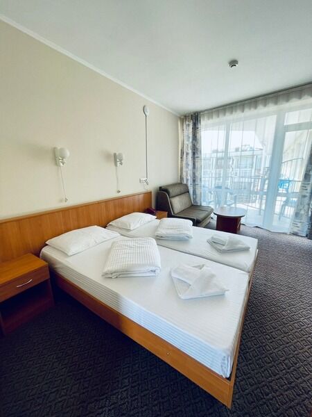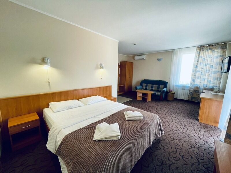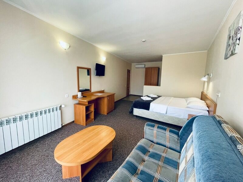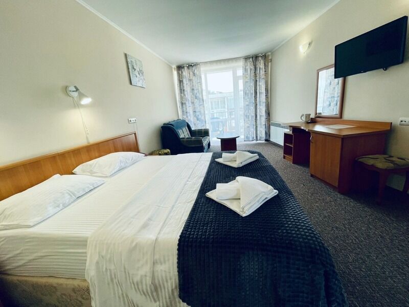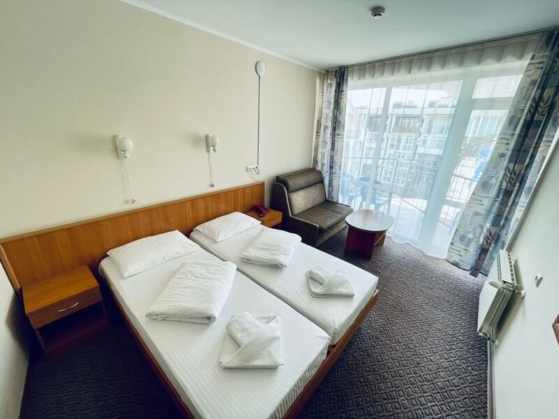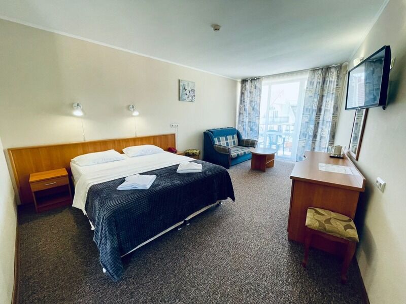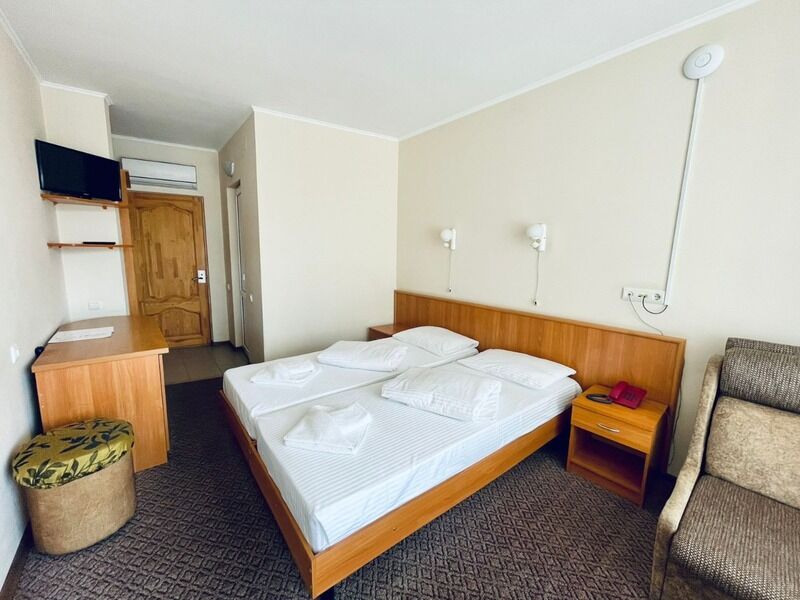 Путешествие с паройЦена = качествоОтель понравился. Конечно, турецкого сервиса ждать не стоит, но для наших курортов очень даже неплохо. Все чистое, есть бассейн. Удобно, что есть лифт. Номера обычные, все работало. Отзывчивые и приятные люди на ресепшен и в столовой. Завтраки нормальные: каша, колбаса, сыр, фрукты, омлет, печенье, чай и тд. Все свежее и вкусное. На ресепшен можно купить воду, пиво. Для курящих - есть курилка. До моря около километра, может чуть больше. Рядом рынок, магазины, аптека. Для бюджетного отдыха рекомендую.