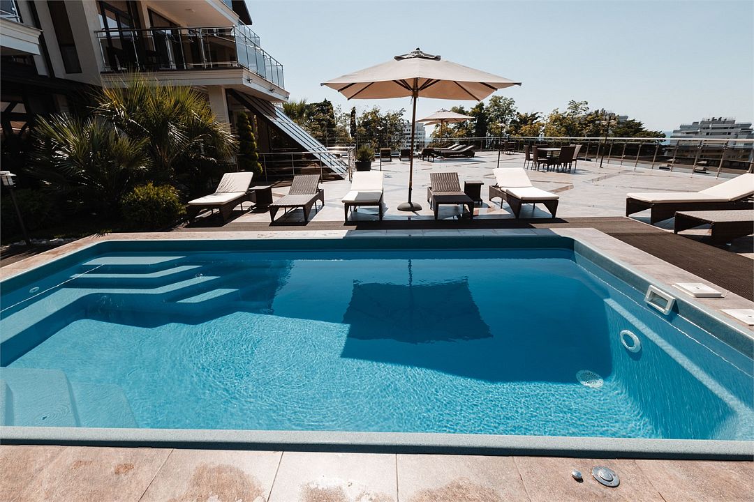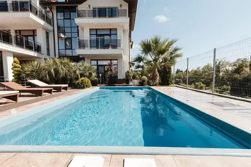 - С бассейном и собственным пляжем
