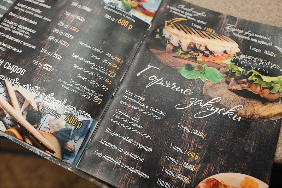 - одно блюдо из категории "салаты", либо одно блюдо из категории "холодные и горячие закуски",
