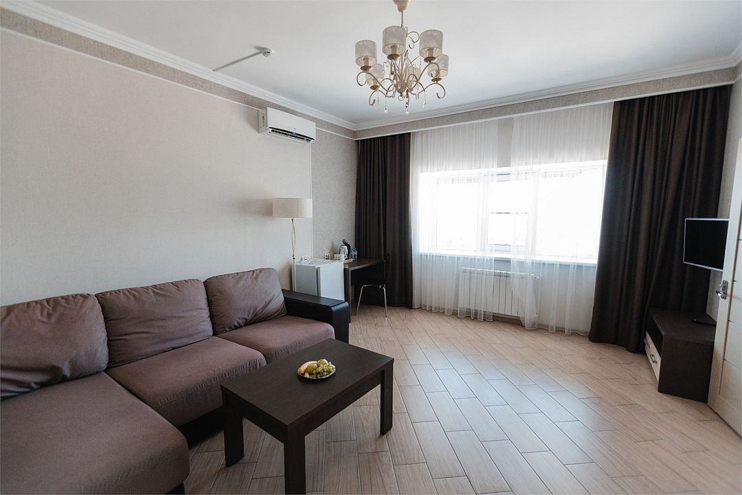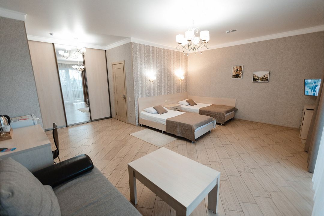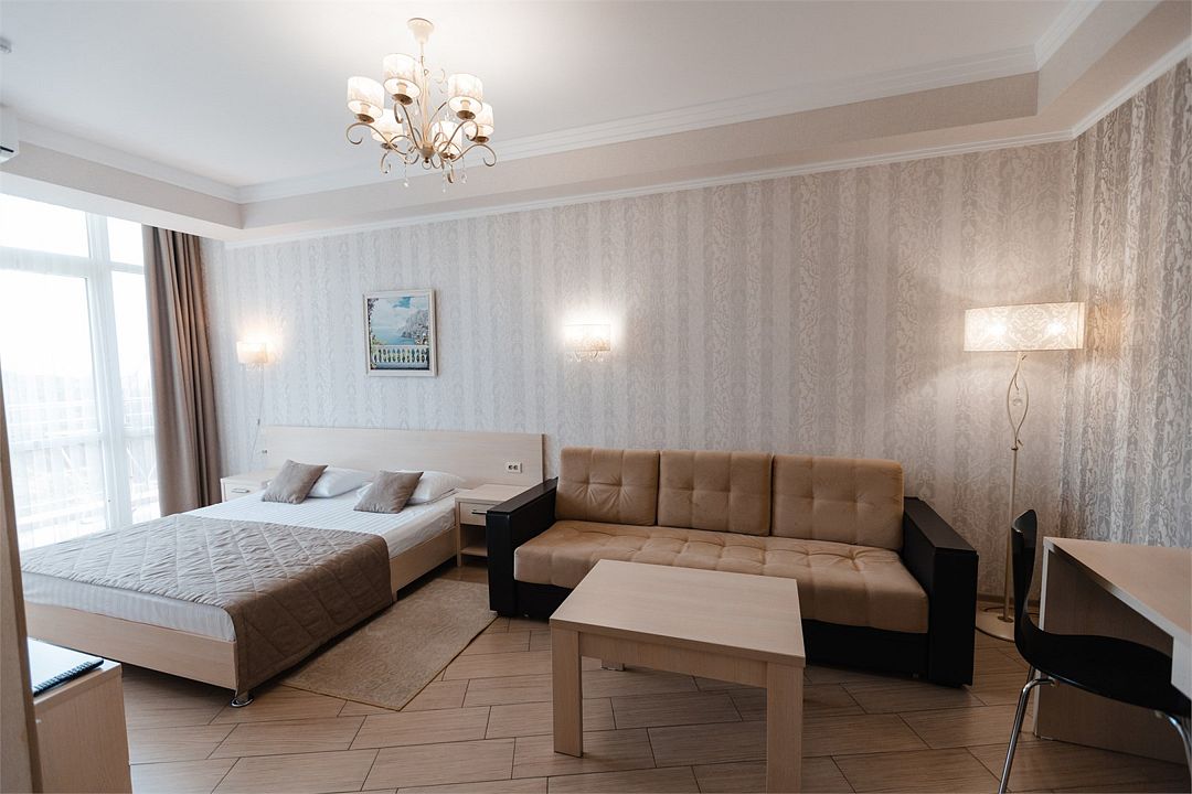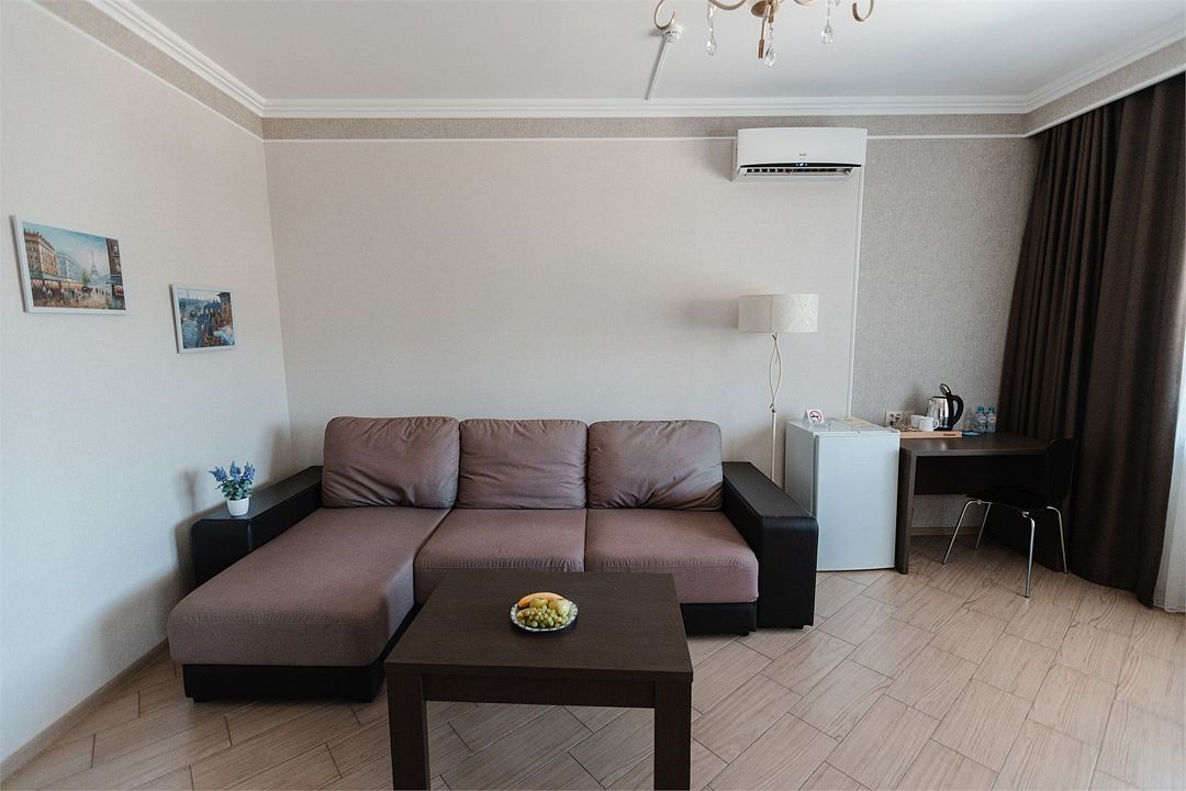 Стильные комнаты имеют всю необходимую современную мебель и обеспечивают заведению высокий уровень престижа. В люксовых номерах есть отдельная гостиная для отдыха и зона кухни. В каждой комнате холодильник, система кондиционирования, электрочайник, высокоскоростной интернет.