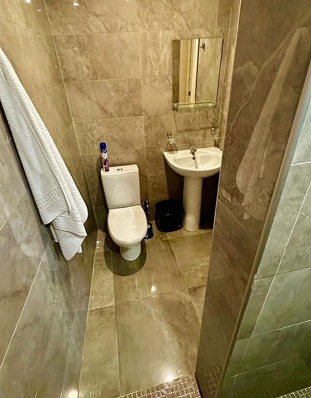 Индивидуальная ванная комната: душ, раковина, туалет, халат, тапочки, фен, ванные принадлежности (шампунь, гель для душа, мыло).
