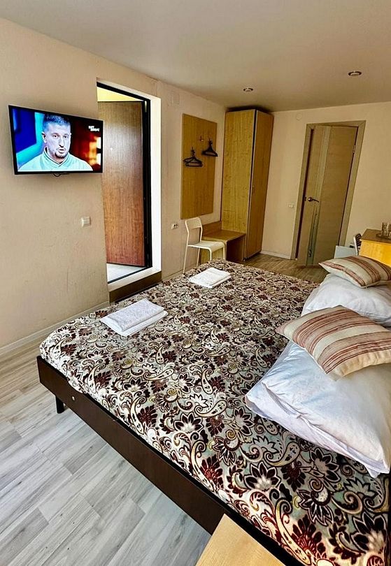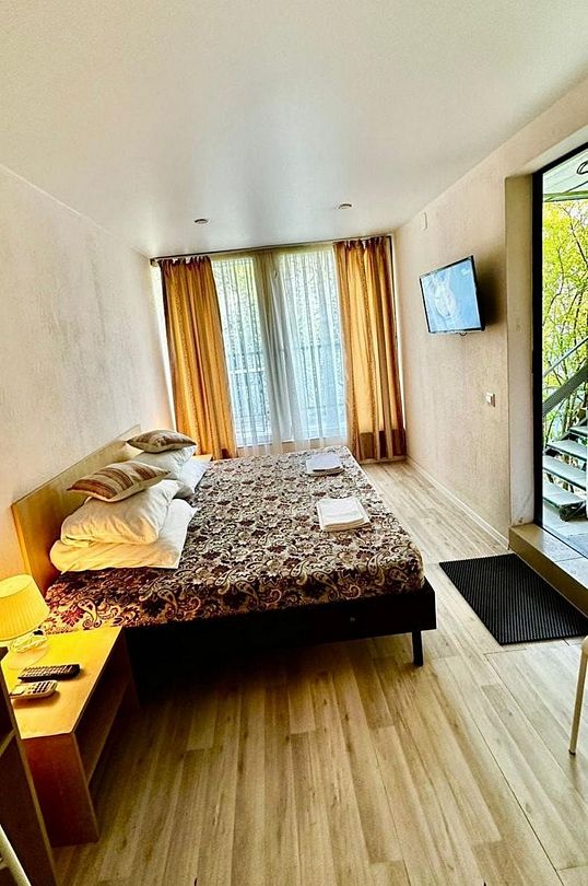 Двуспальная кровать, ТВ, кондиционер, диван односпальный, с/у с душем. Отдельный вход.