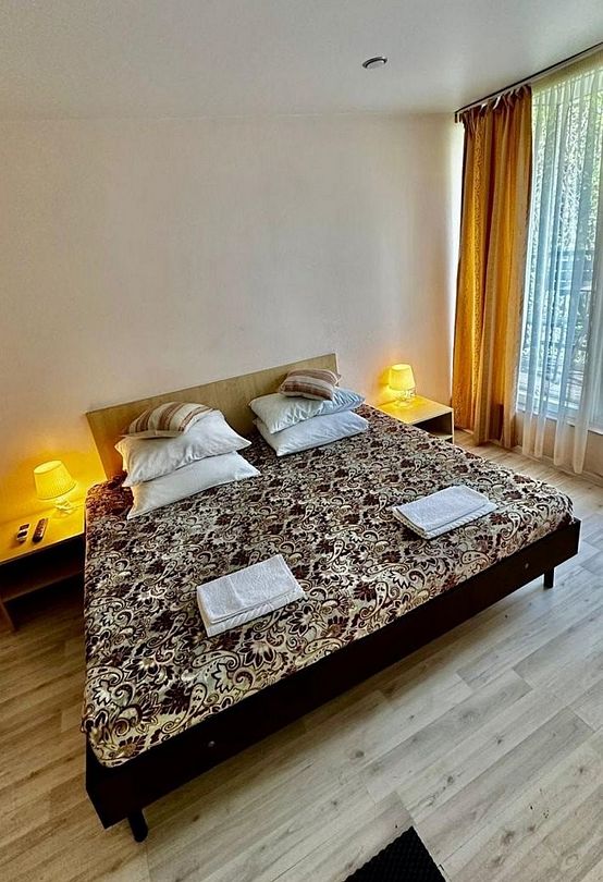 В номере: 1 двуспальная кровать, доп. место раскладушка.