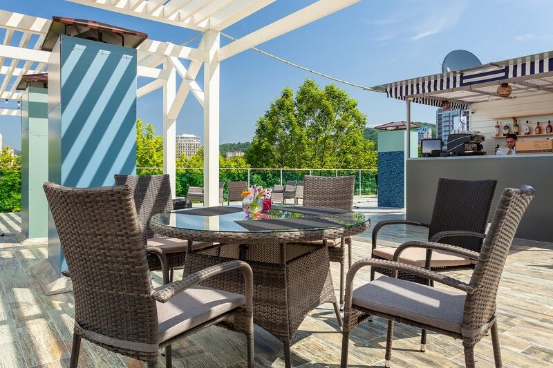 Путешествие с паройБар на крыше вау!Замечательный отель с уютной атмосферой, внимательным обслуживанием, и очень красивым интерьером! В целом, отличный выбор для отдыха!" Особенно хочу выделить бар расположенный на крыше, виды оттуда это сразу +100 к атмосферности вечера