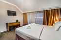 телевизор, кабельное телевидение, Wi-Fi, кондиционер, фен, тапочки, гигиенические средства, балкон, две односпальные или большая двуспальная кровать, тумбы, шкаф для одежды, письменный стол, сейф, питьевая вода, душ, вид на море, стаканы, туалет, внутренний телефон, мини-холодильник, чайная станция, уборка номера, можно с питомцамиВ гостиничном номере