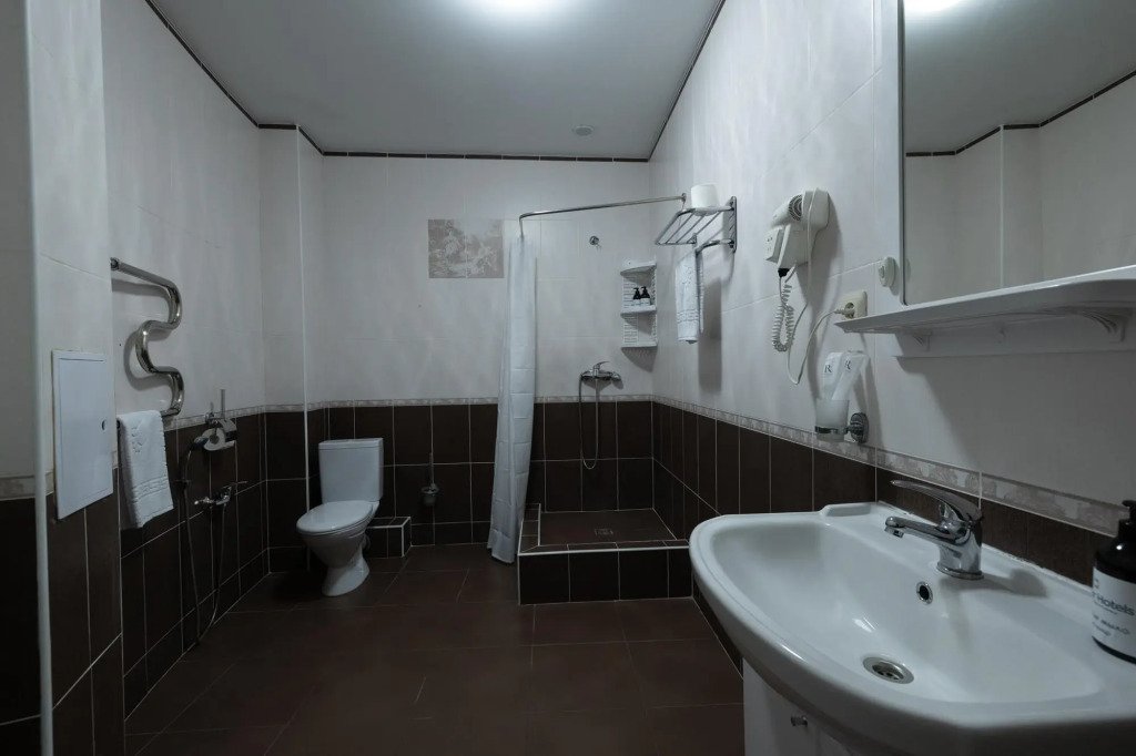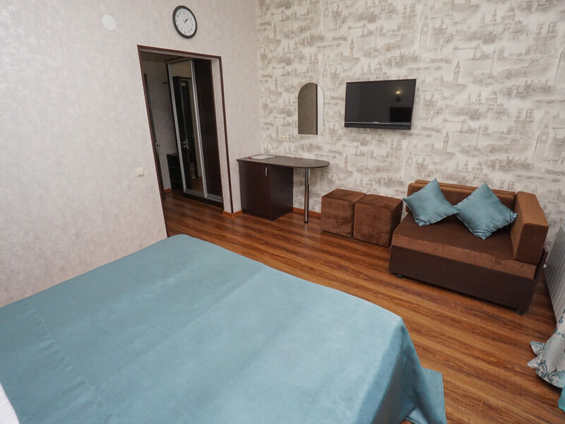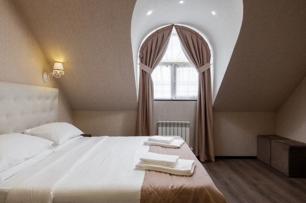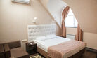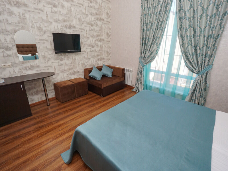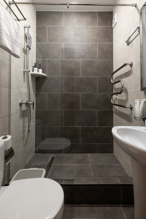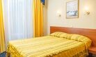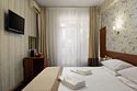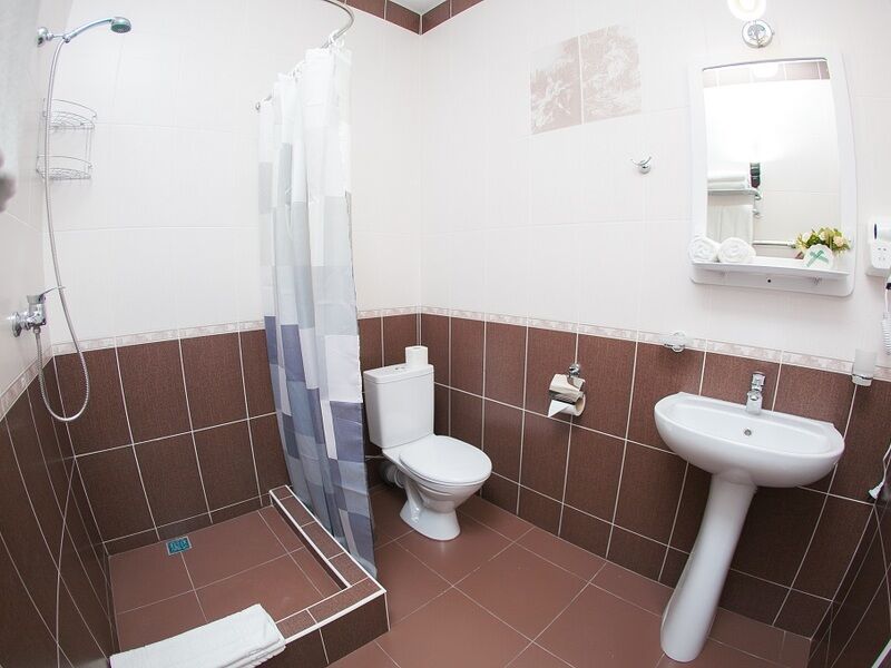 Путешествие с семьейХорошее обслуживание, в отеле персонал лояльно относится к отдыхающим.Интерьер нормальный, что в общих зонах, в холле, в кафе, что в номере. Ожидания наши по этому поводу оправдались. У нас был номер на мансарде стандартный. Он небольшой, но мы и не рассчитывали сидеть в номере долго. Зато есть свой балкончик, можно выйти подышать. Санузел стандартный, как в отелях обычно, плиткой огорожена душевая. Вода нормально идет, по вечерам не пропадает. А то обычно после моря придешь смыть с себя соль, а воды нету, потому что все вечером моются. Здесь такого не наблюдала. Нормально можно по вечерам помыться. Кровать удобная, тумбочки есть, зеркало, шкаф. В общем все простенько и нормально. Телевизор ловит много каналов, интернет тоже хорошо ловит на территории отеля и в самом номере. На завтраки ходили, шведский стол нормальный, ели и не нужно заморачиваться, что бы поесть и где это всё взять. Цена в принципе нормальная, но лучше конечно бронировать заранее, а то рискуете не успеть.