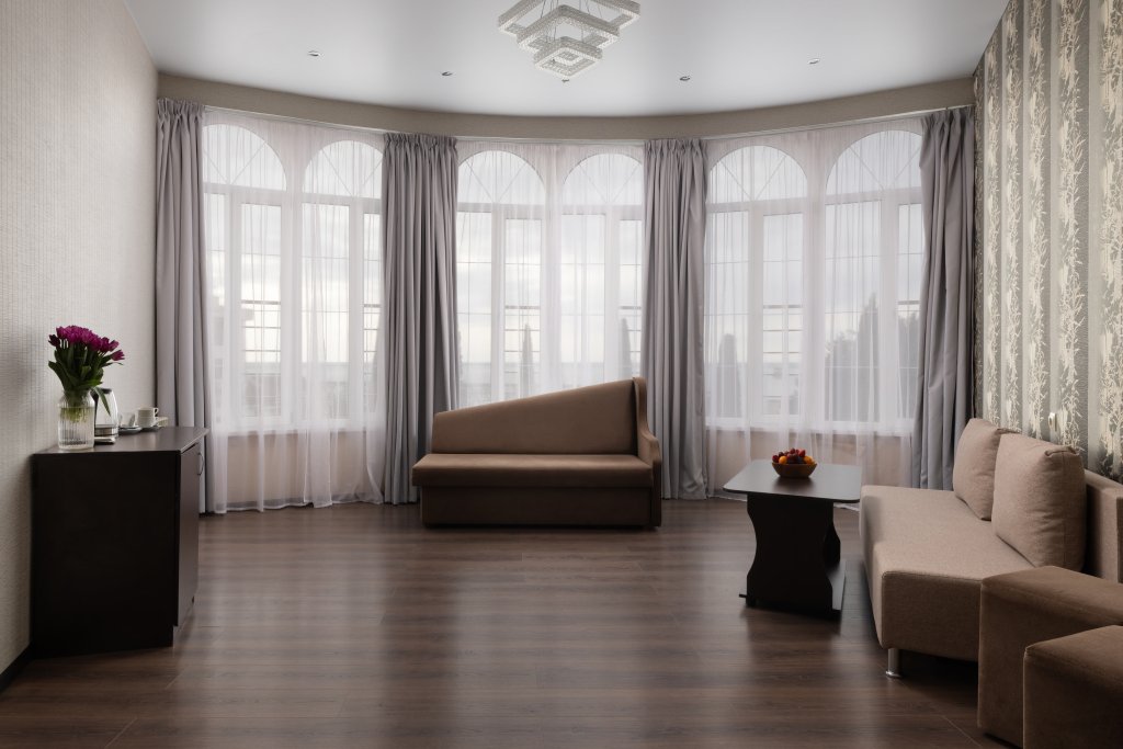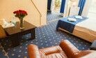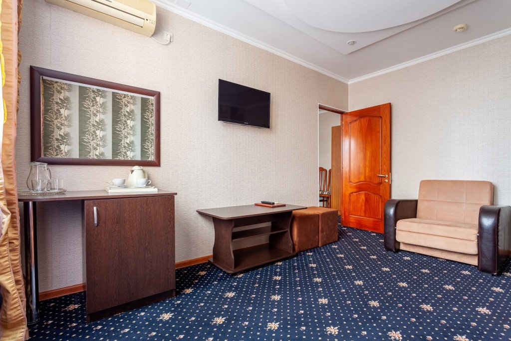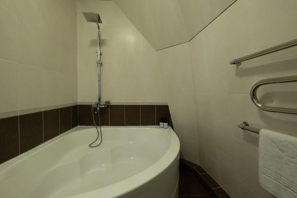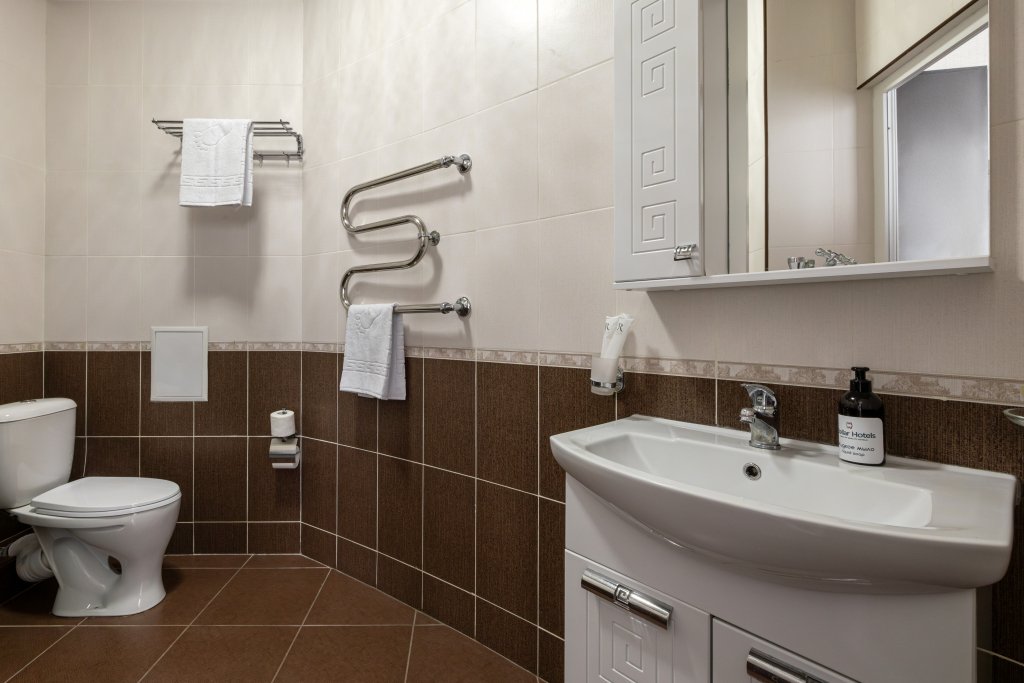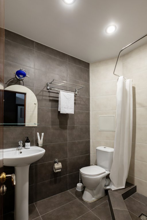Путешествие с семьейХорошее обслуживание, в отеле персонал лояльно относится к отдыхающим.Интерьер нормальный, что в общих зонах, в холле, в кафе, что в номере. Ожидания наши по этому поводу оправдались. У нас был номер на мансарде стандартный. Он небольшой, но мы и не рассчитывали сидеть в номере долго. Зато есть свой балкончик, можно выйти подышать. Санузел стандартный, как в отелях обычно, плиткой огорожена душевая. Вода нормально идет, по вечерам не пропадает. А то обычно после моря придешь смыть с себя соль, а воды нету, потому что все вечером моются. Здесь такого не наблюдала. Нормально можно по вечерам помыться. Кровать удобная, тумбочки есть, зеркало, шкаф. В общем все простенько и нормально. Телевизор ловит много каналов, интернет тоже хорошо ловит на территории отеля и в самом номере. На завтраки ходили, шведский стол нормальный, ели и не нужно заморачиваться, что бы поесть и где это всё взять. Цена в принципе нормальная, но лучше конечно бронировать заранее, а то рискуете не успеть.