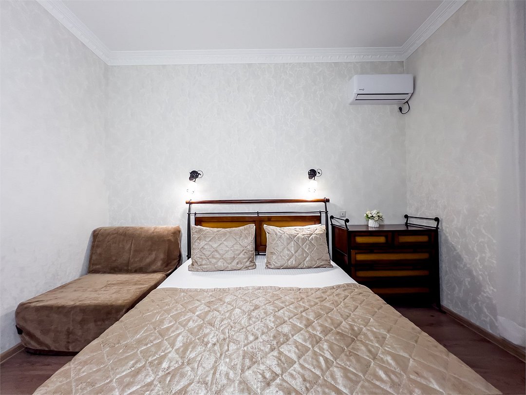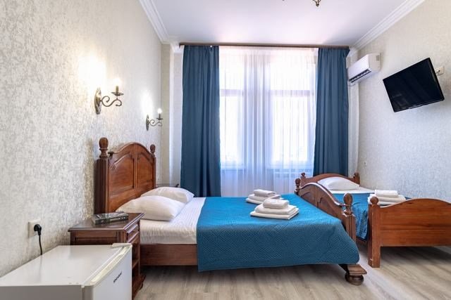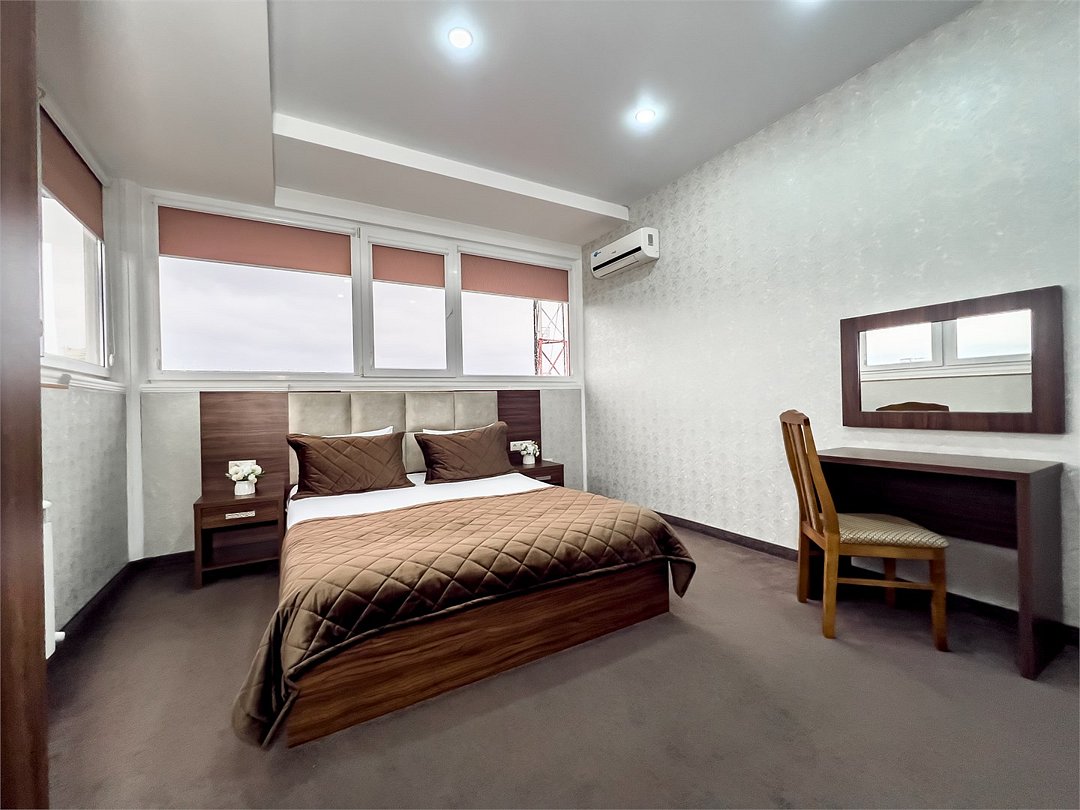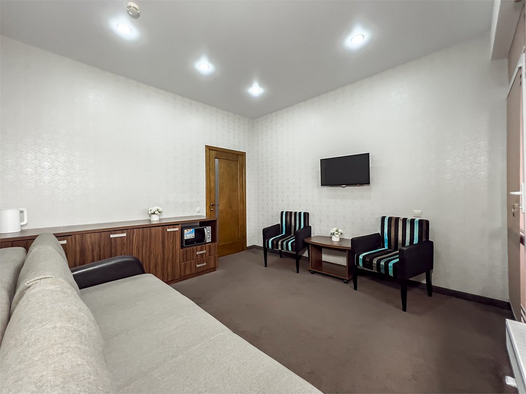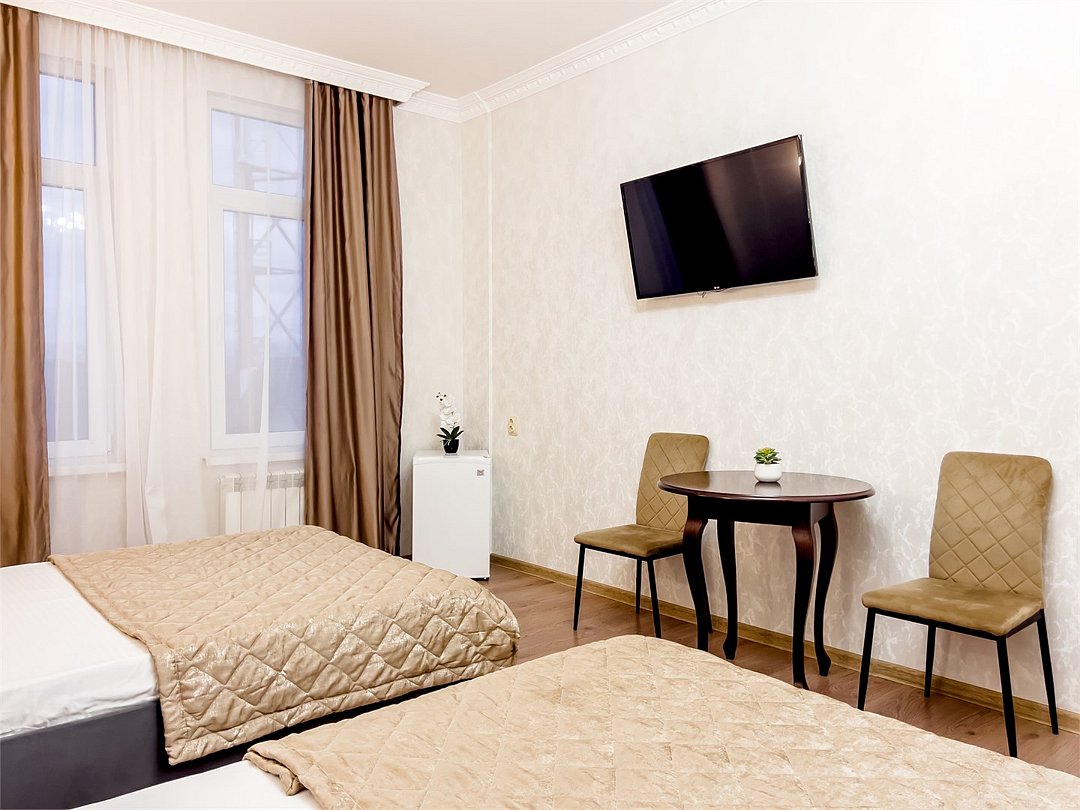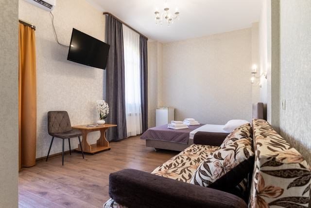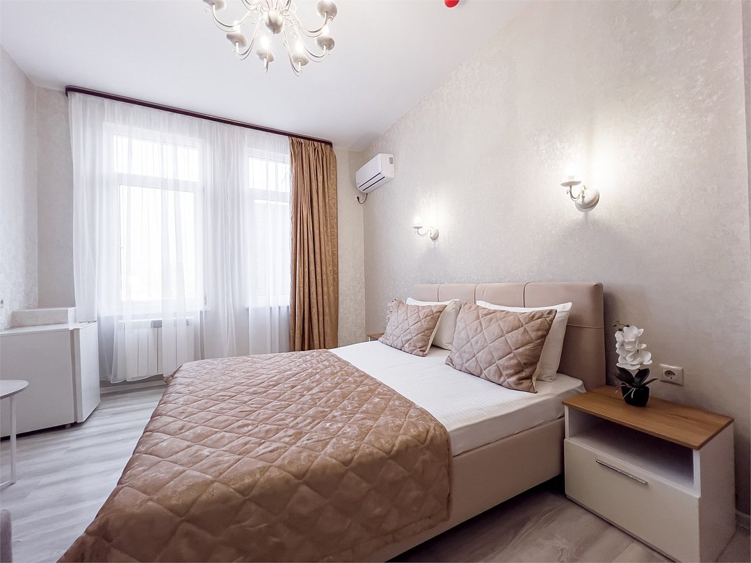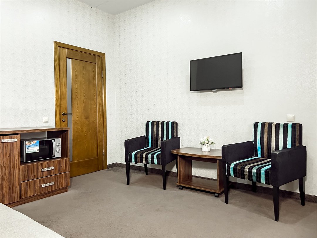 Удобные и уютные номера категории «Комфорт» вместимостью до 3 гостей, идеально подойдут как для отдыха, так и для деловых поездок. Все номера оснащены двуспальной кроватью и кресло-кроватью, телевизорам, кондиционерам, холодильникам и имеют бесплатный доступ к сети Wi-Fi.Услуги и удобства