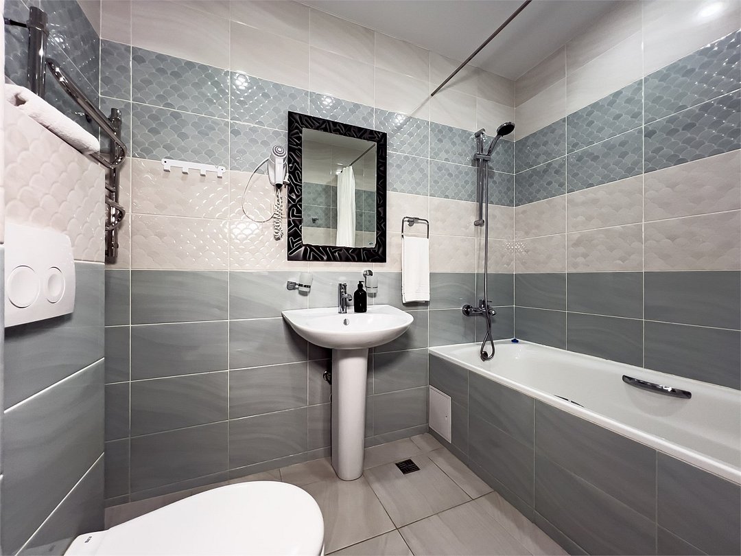 кабельное телевидение, Wi-Fi, светильник, фен, ванная комната, банные полотенца, двуспальная кровать, диван, тумбы, стулья, шкаф для одежды, журнальный столик, зеркало, унитаз, раковина, отопление, душ, вид на море, вид на город, ламинат, туалетный столик, туалетные средства, сплит-система, телевизор с плоским экраном, мини-холодильник, вид на горы, номер для некурящих, двуспальный раскладной диван-кровать, уборка номера, услуги прачечной (платно), вешалки-плечики, мыло, можно с питомцамиВ гостиничном номере