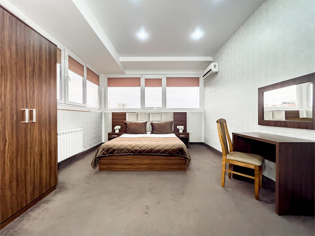 кабельное телевидение, Wi-Fi, холодильник, светильник, фен, микроволновая печь, ванна или душевая кабина, банные полотенца, тапочки, балкон, двуспальная кровать, тумбы, стулья, шкаф для одежды, обеденный стол, зеркало, комод, две комнаты, сейф, чайник, унитаз, раковина, гостиная зона, ковровое покрытие, отопление, вид на город, высокие потолки, туалетный столик, туалетный столик, туалетные средства, сплит-система, панорамные окна, раскладной диван, телевизор с плоским экраном, кухонный уголок, номер для некурящих, двуспальный раскладной диван-кровать, межкомнатная дверь, уборка номера, услуги прачечной (платно), вешалки-плечики, мыло, без питомцевВ гостиничном номере
