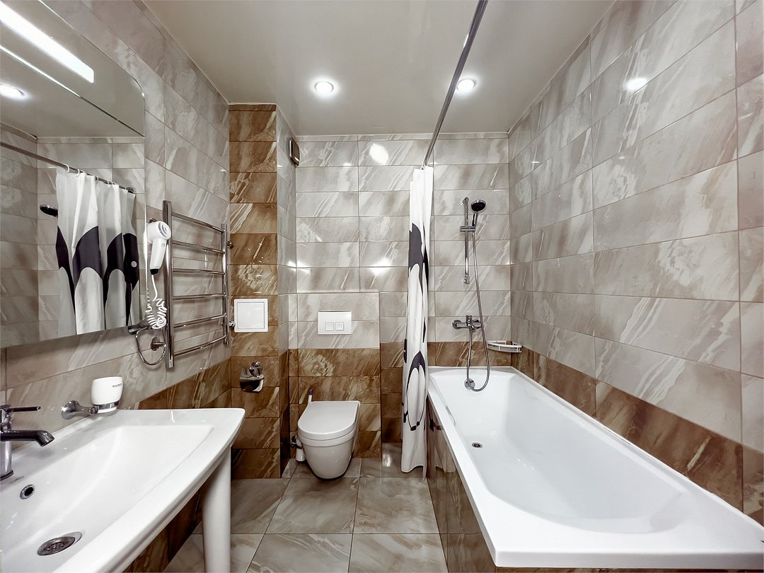 кабельное телевидение, Wi-Fi, светильник, фен, ванная комната, банные полотенца, двуспальная кровать, тумбы, шкаф для одежды, зеркало, унитаз, раковина, отопление, душ, вид на город, ламинат, туалетные средства, сплит-система, телевизор с плоским экраном, мини-холодильник, вид на горы, номер для некурящих, кресло-кровать, уборка номера, услуги прачечной (платно), вешалки-плечики, мыло, можно с питомцамиВ гостиничном номере