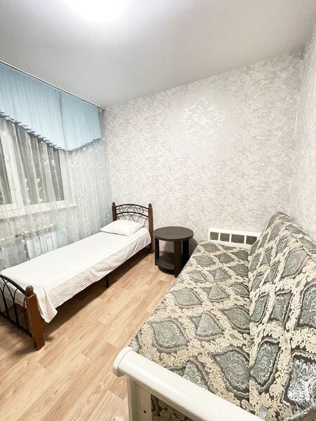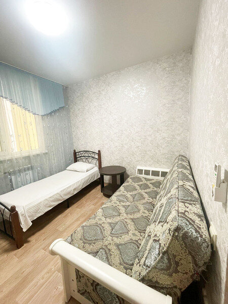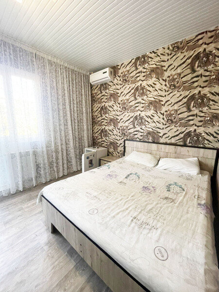 Двуспальная кровать, односпальная кровать, шкаф, зеркало, стол, стулья, с/у, ТВ.