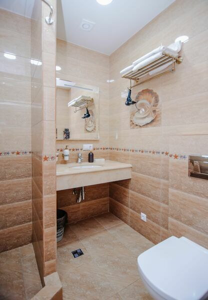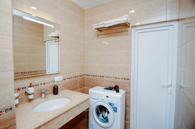 В номерах отеля возможно размещение до 4-х человек. Есть вся необходимая мебель, телевизор, стиральная машина. Постельное белье и полотенца предоставляются. Ванная комната оснащена халатами, тапочками, туалетными принадлежностями и средствами гигиены.