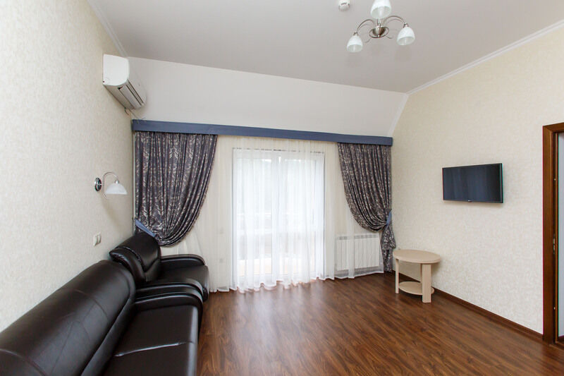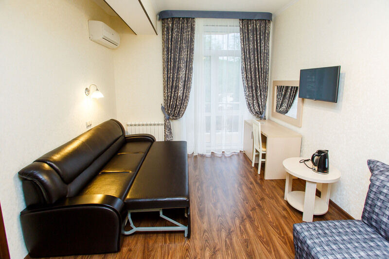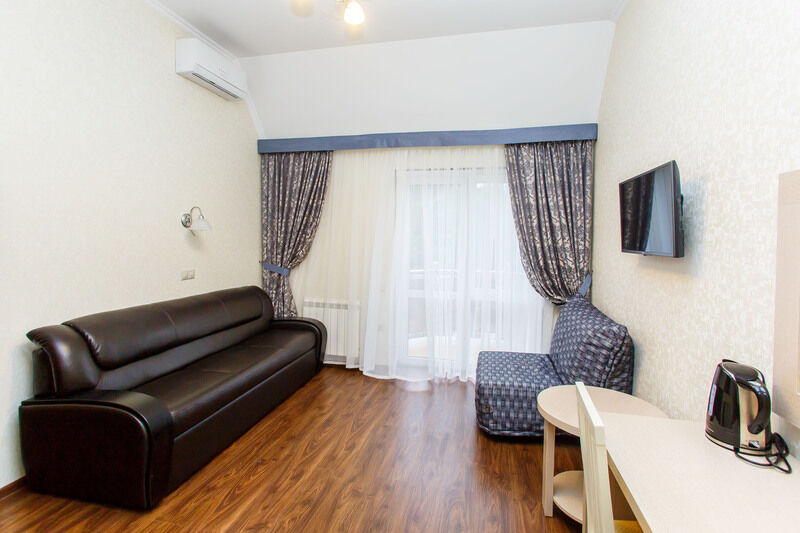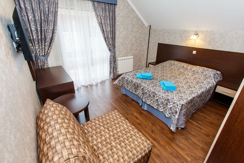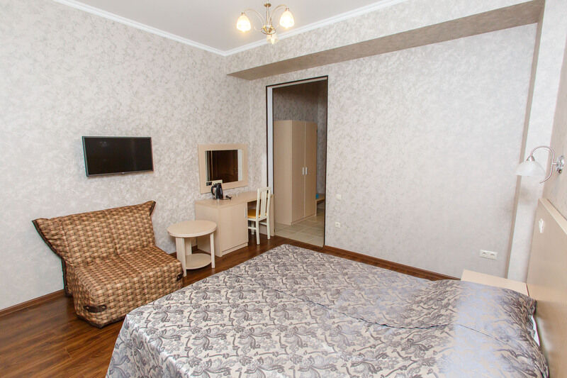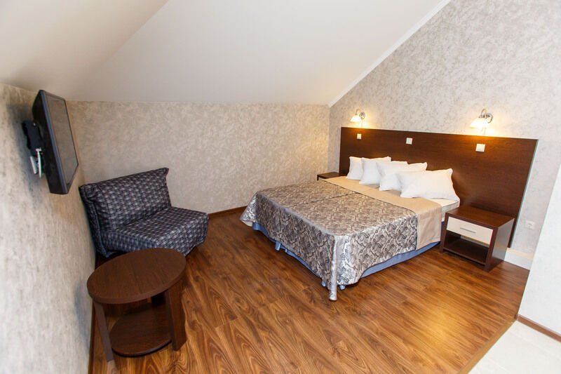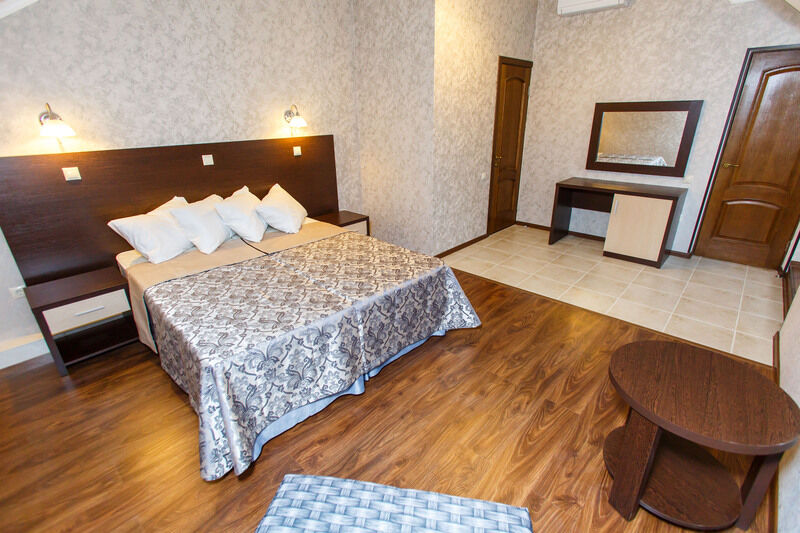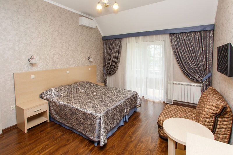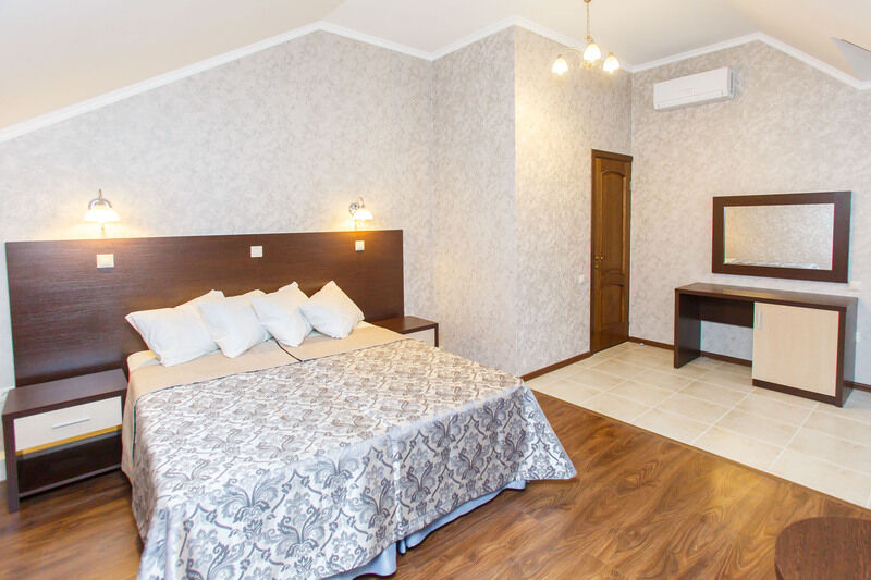 Для размещения отдыхающих предлагаются просторные и светлые номера. Каждый из них оформлен в строгом классическом стиле и светлом интерьере. В них имеется телевизор с плоским экраном, беспроводной доступ Wi-Fi и мебель с отделкой из дерева.