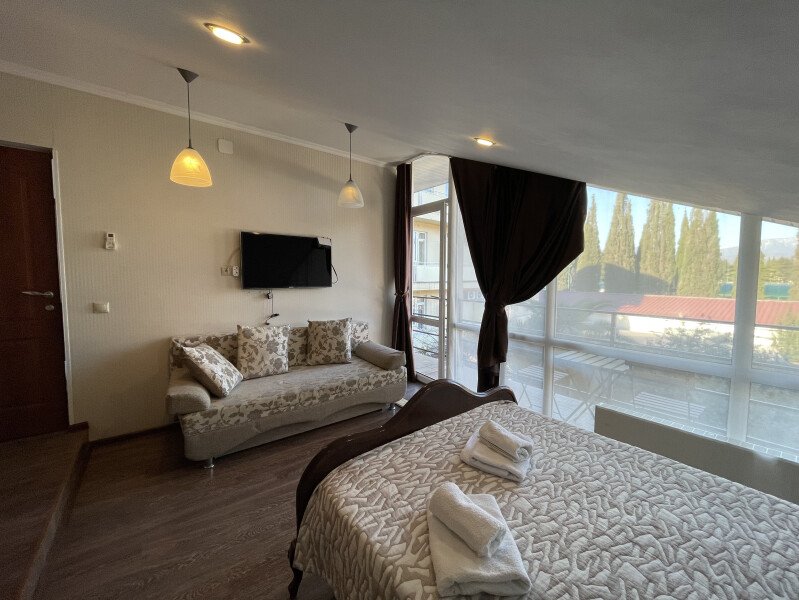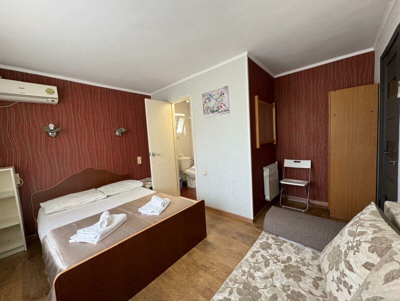 Гостевой дом располагает 12 стандартными номерами с удобствами, кондиционером, телевизором ЖК со Smart TV, интернетом Wi-Fi. На территории расположена общая кухня.