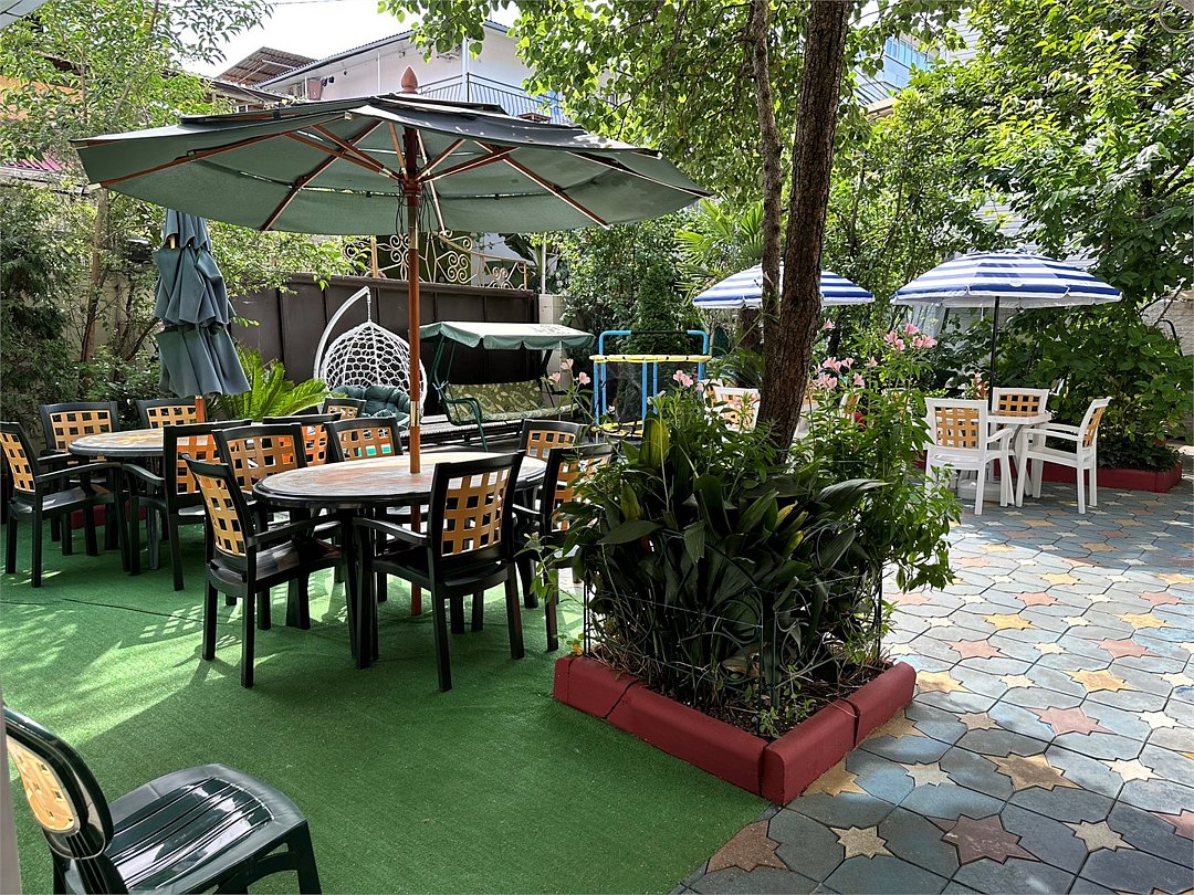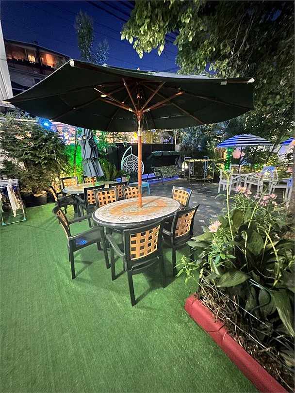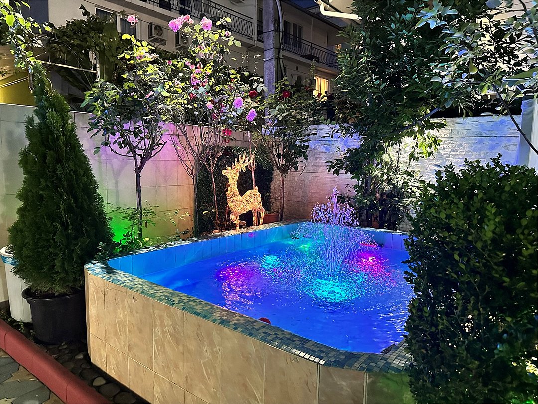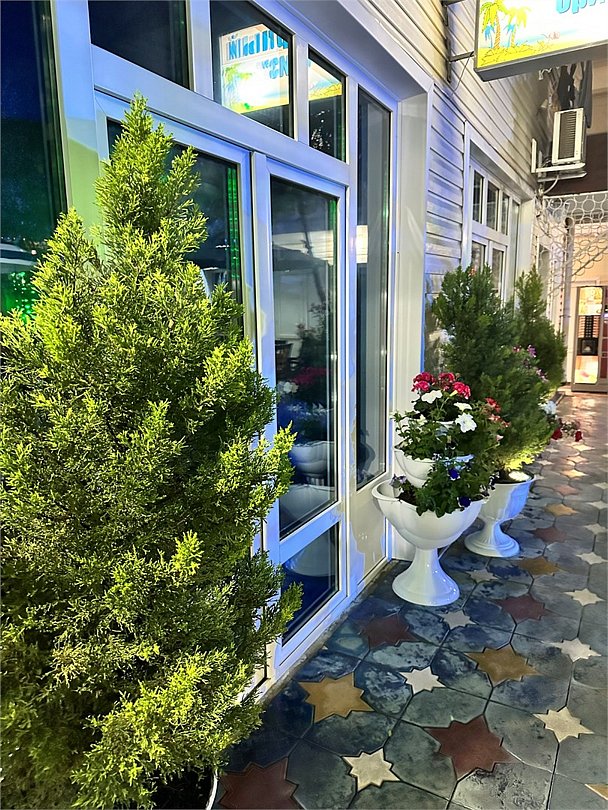 Во дворе фонтан, подсветка, столики для отдыха. Через дорогу недорогое кафе, выпечка там обалденная. Фрукты и овощи высокого качества на каждом углу. Мне очень понравился гранатовый сок без сахара.