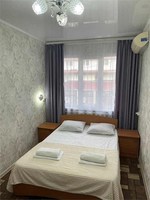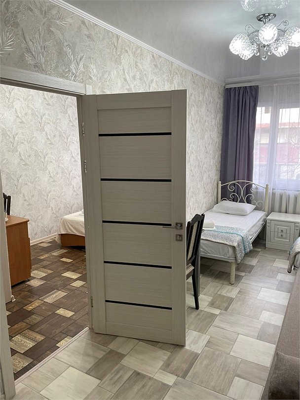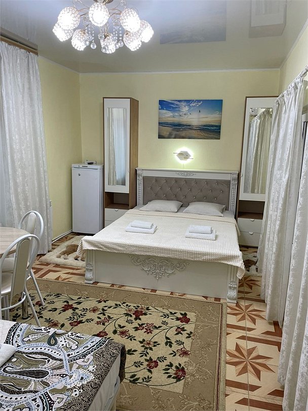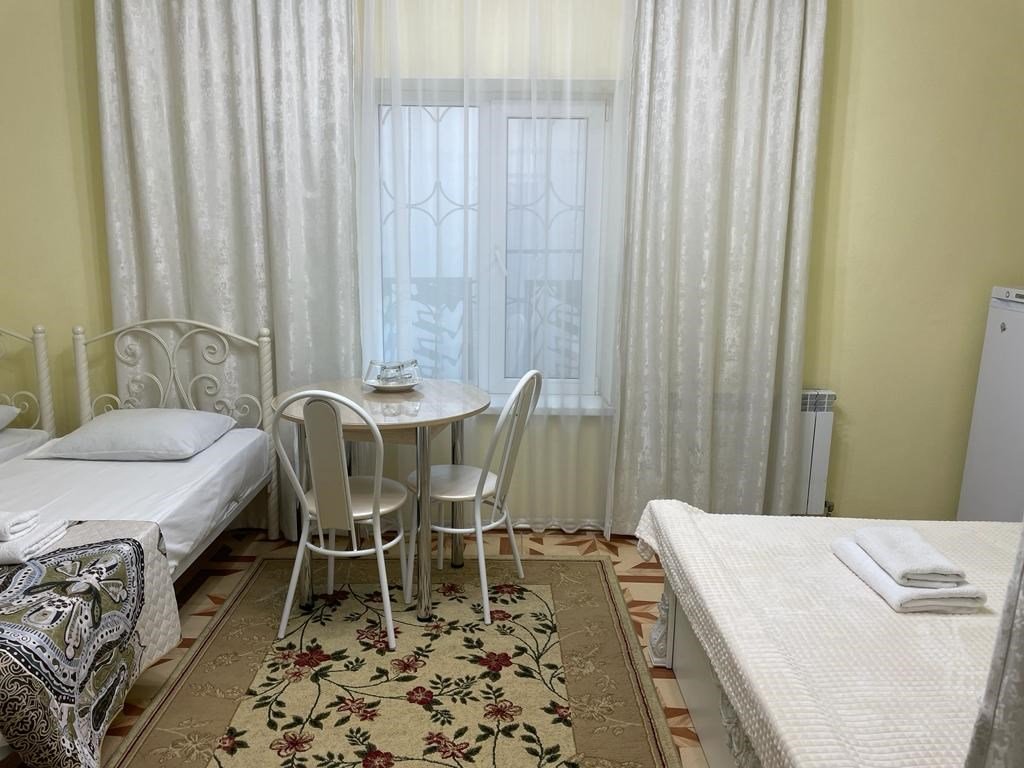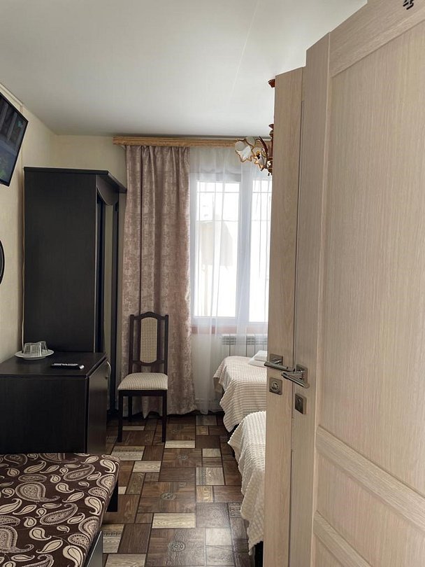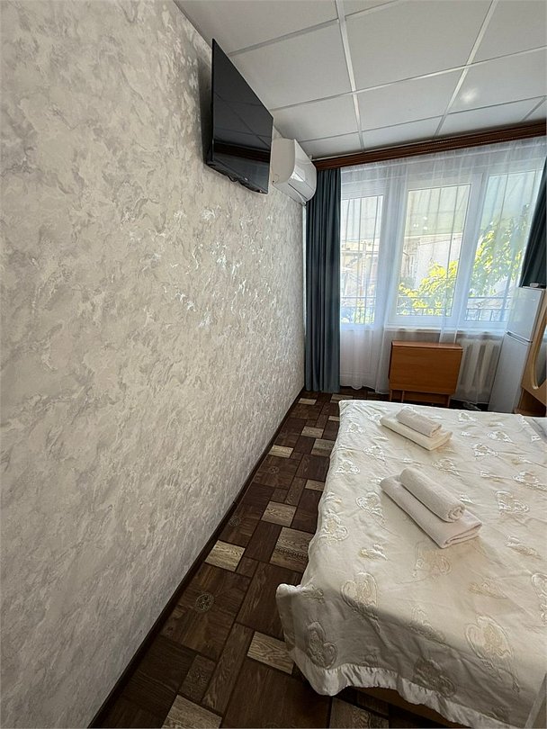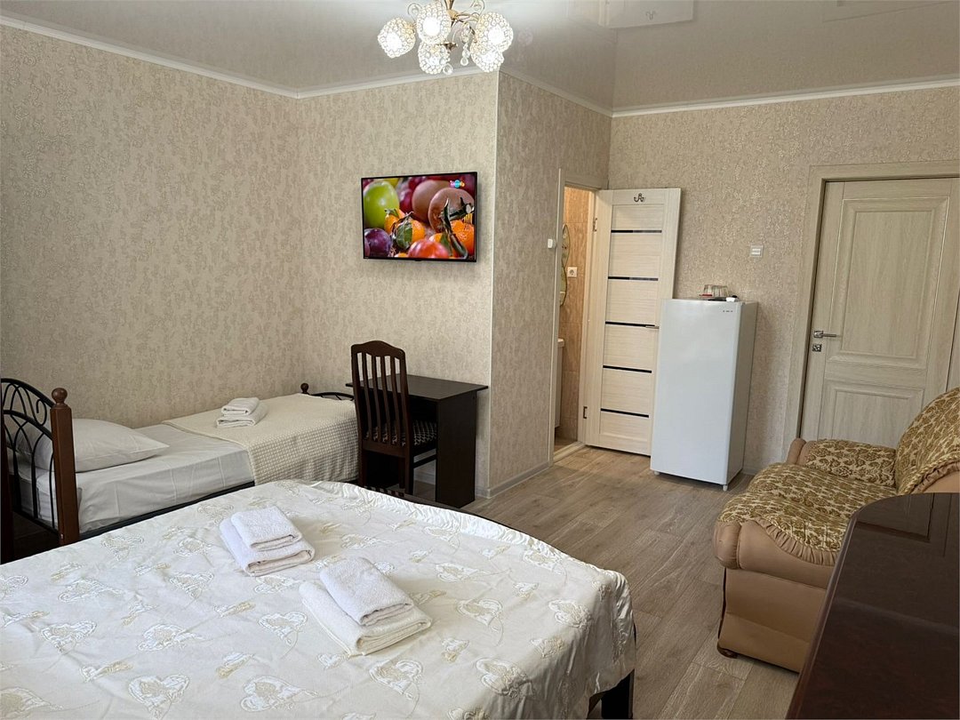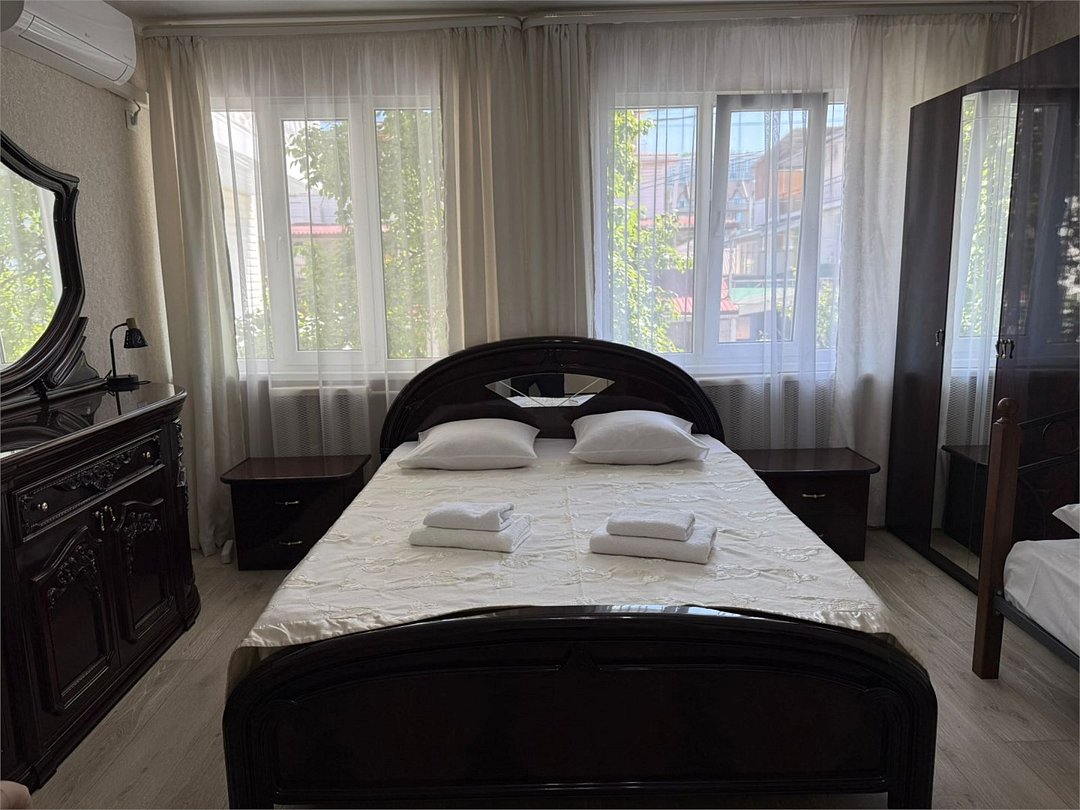 В каждой комнате свой: туалет, ванна, плоский тв, холодильник, кондиционер сплит система, WI-FI интернет, сейф в номере, две односпальные + двуспальная кровать, стол, стулья, зеркало, белье, полотенце, мыло, фен, 20 цифровых каналов, уборка номера по требованию.Услуги и удобства