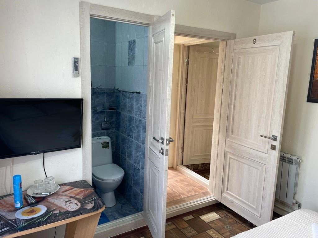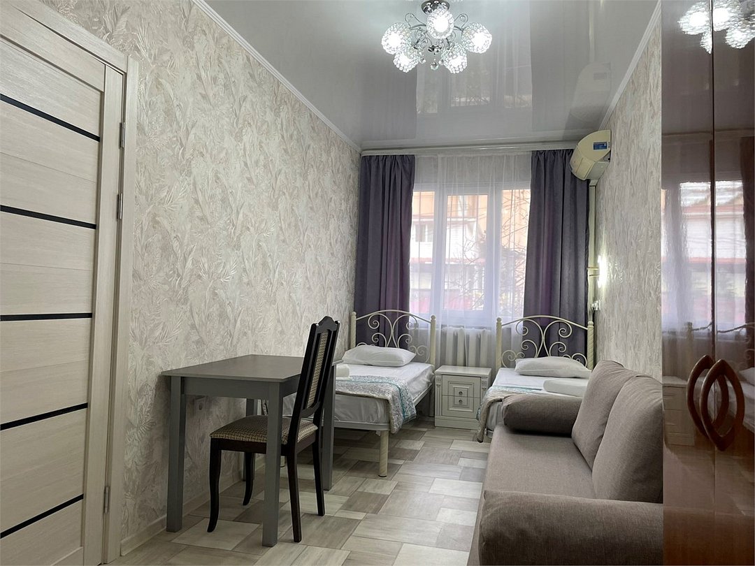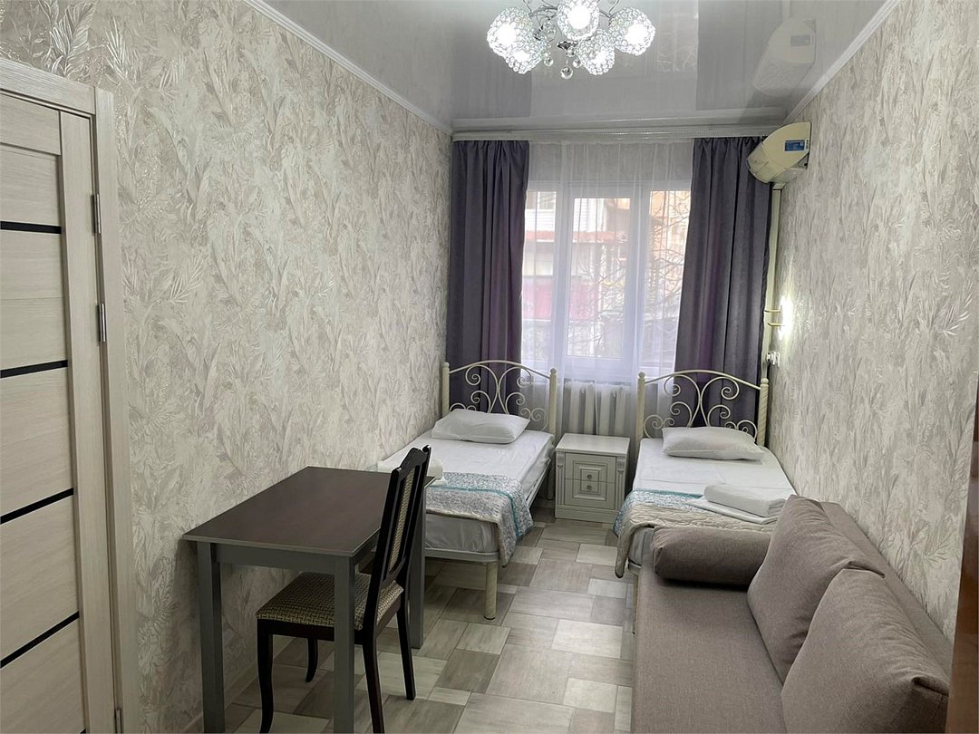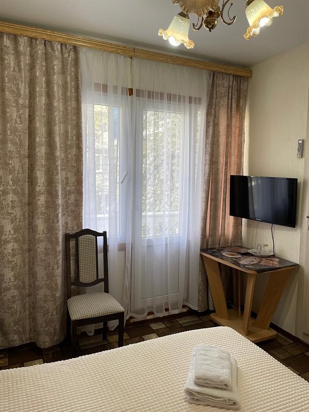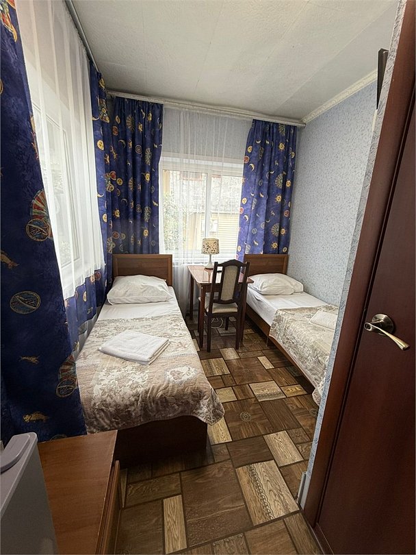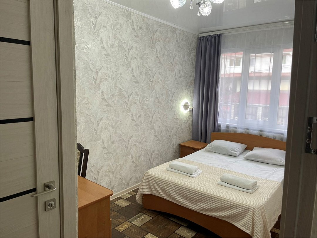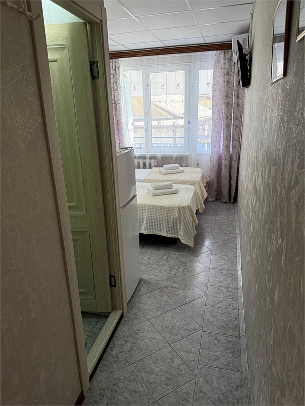 В каждой комнате свой: туалет, ванна, плоский тв, холодильник, кондиционер сплит система, WI-FI интернет, сейф в номере, две односпальные + двуспальная кровать, стол, стулья, зеркало, белье, полотенце, мыло, фен, 20 цифровых каналов, уборка номера по требованию.Услуги и удобства