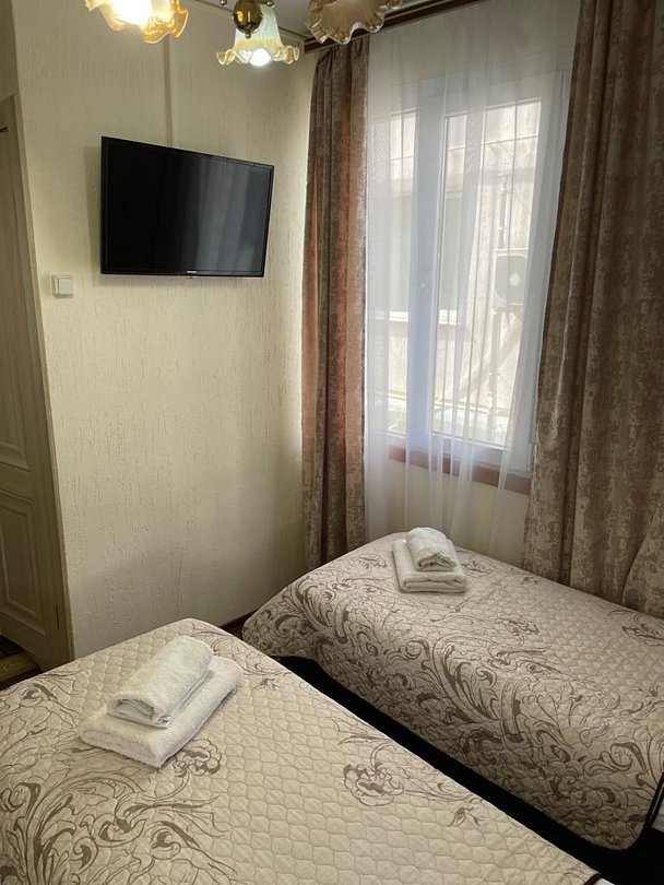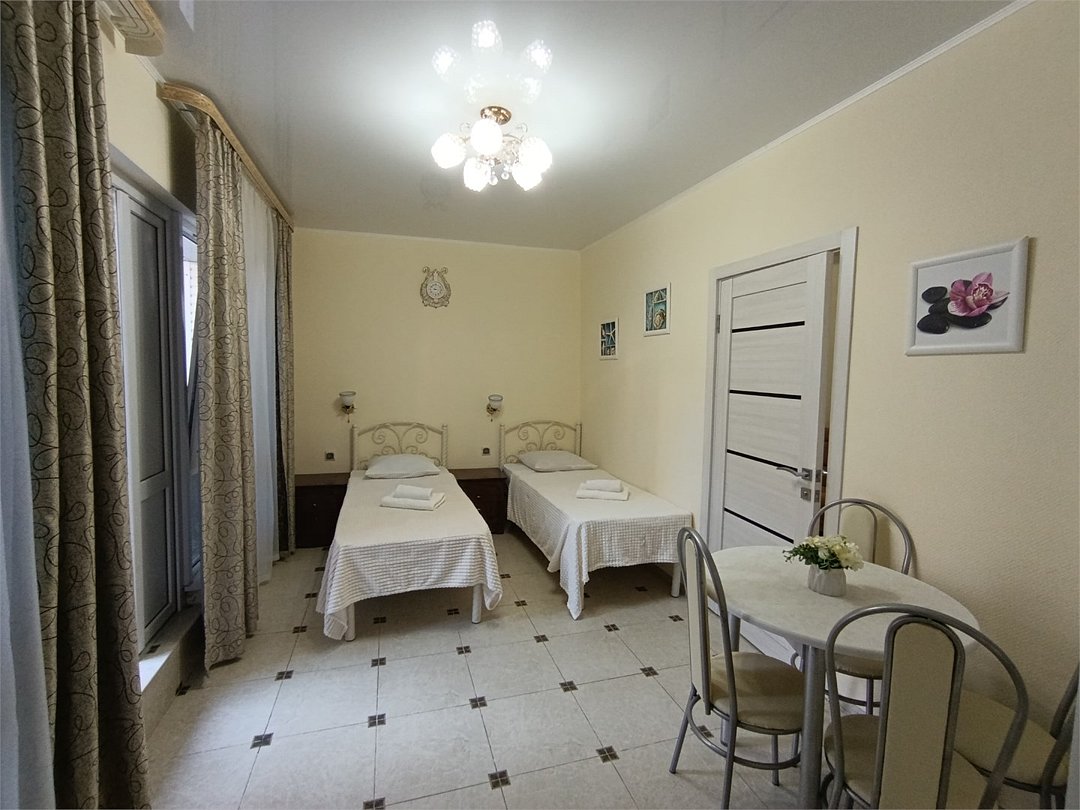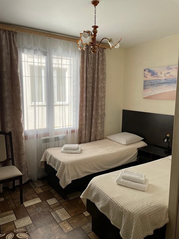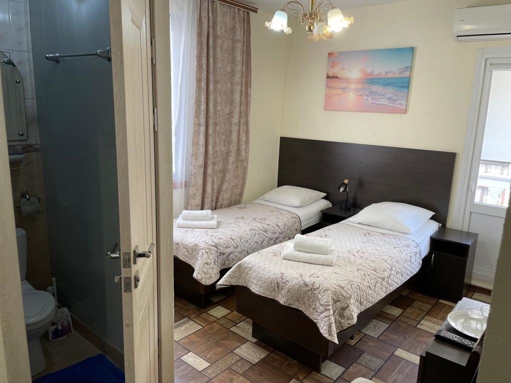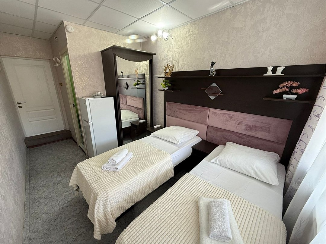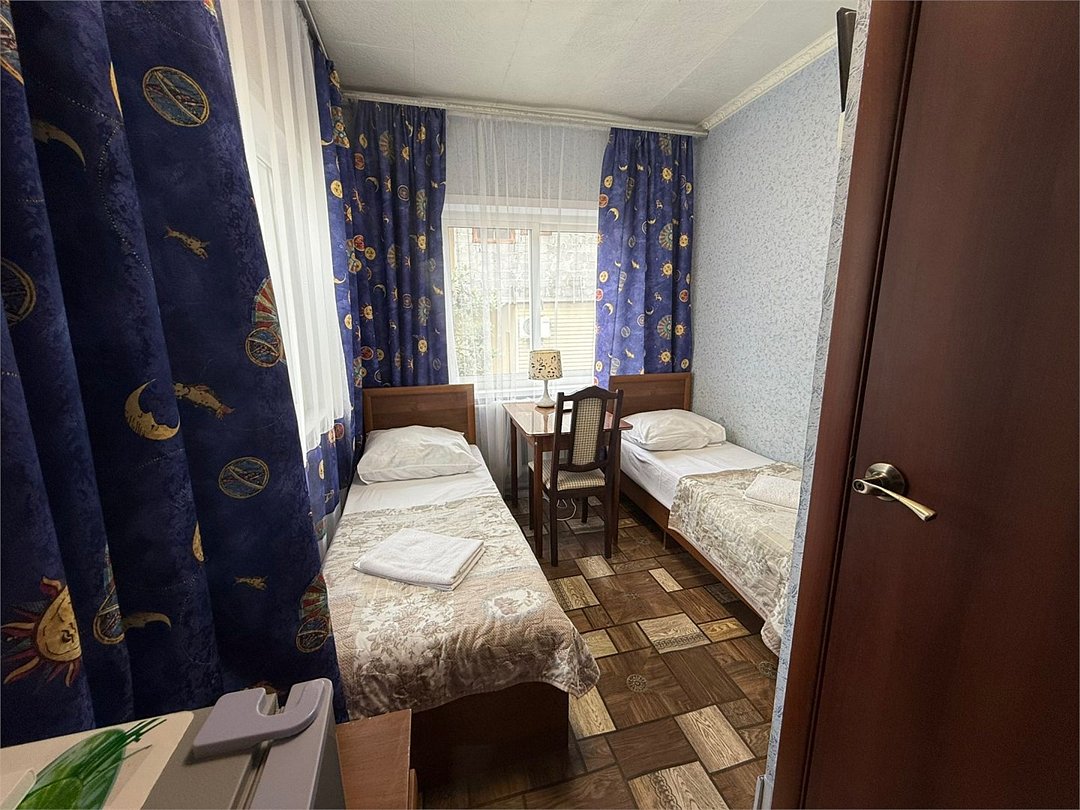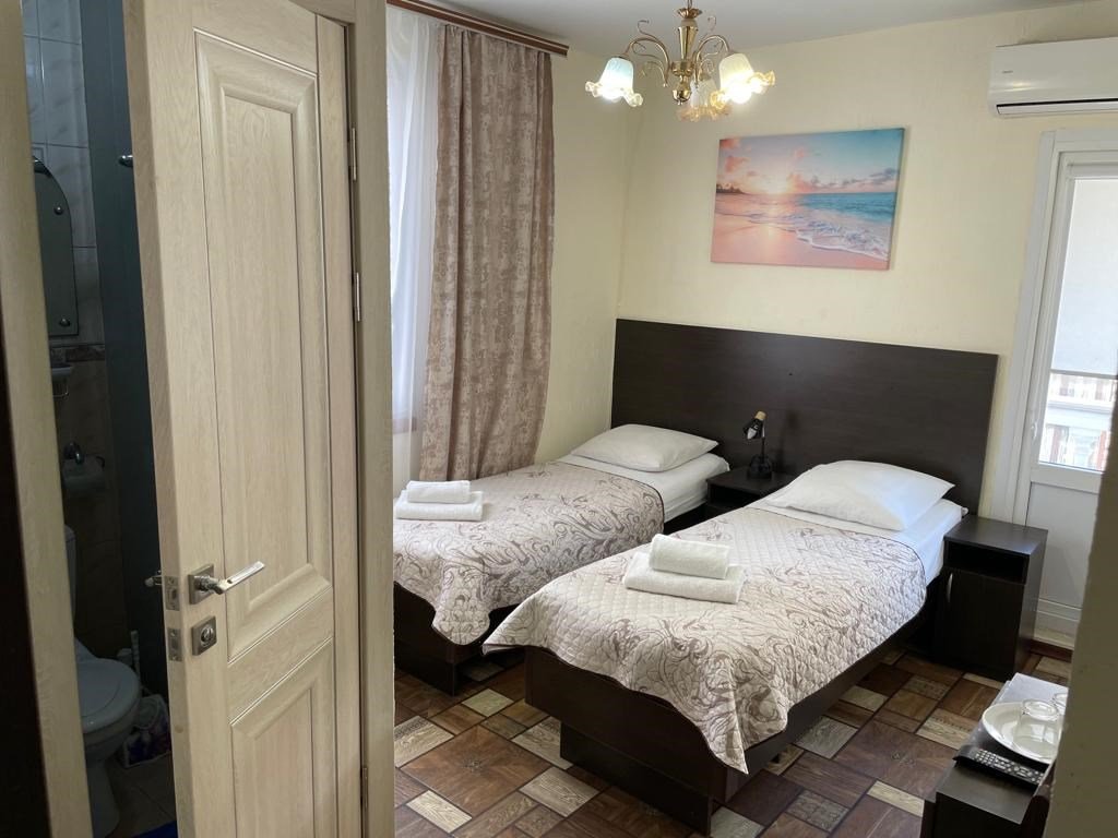 Ванна, туалет, плоский тв, сплит система кондиционер, холодильник, WI-FI интернет, сейф в номере, шкаф, две раздельные кровати, зеркало, белье, полотенце, фен, 20 цифровых каналов, уборка номера по требованию.Услуги и удобства
