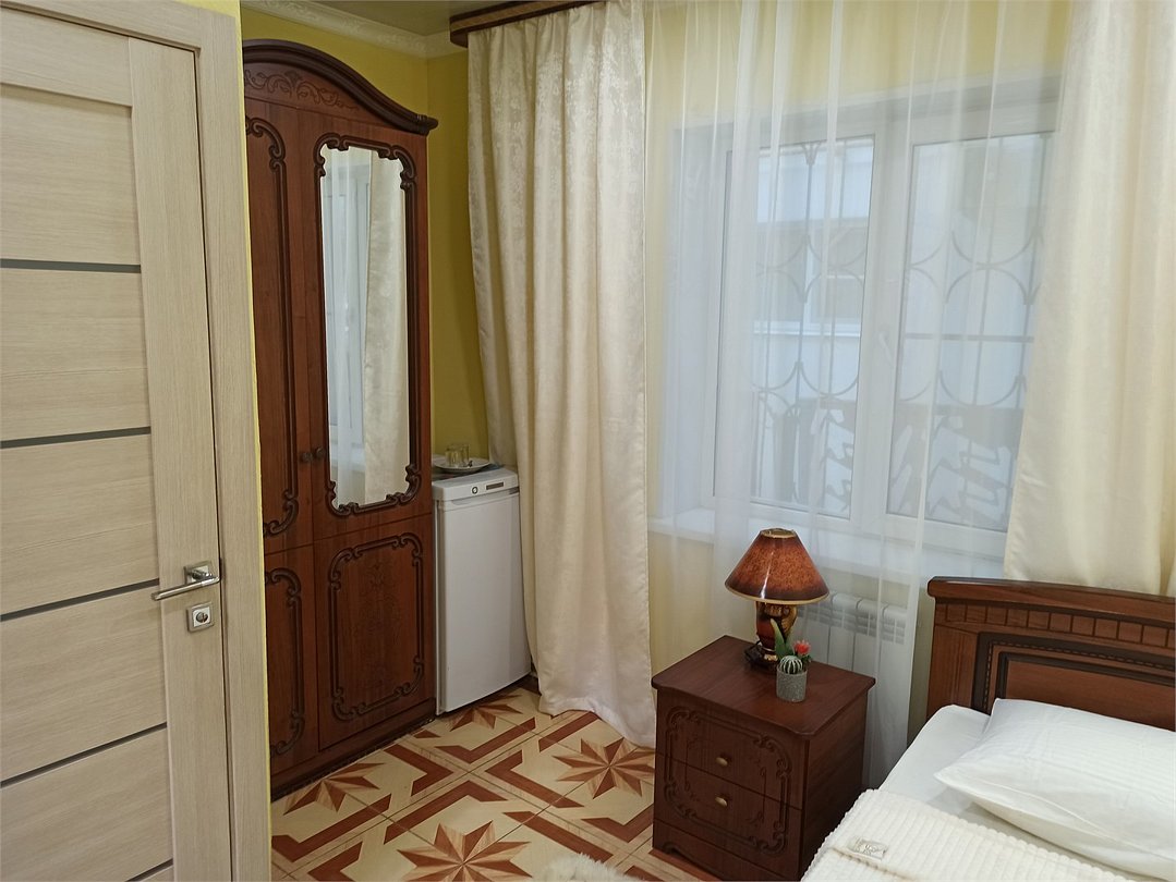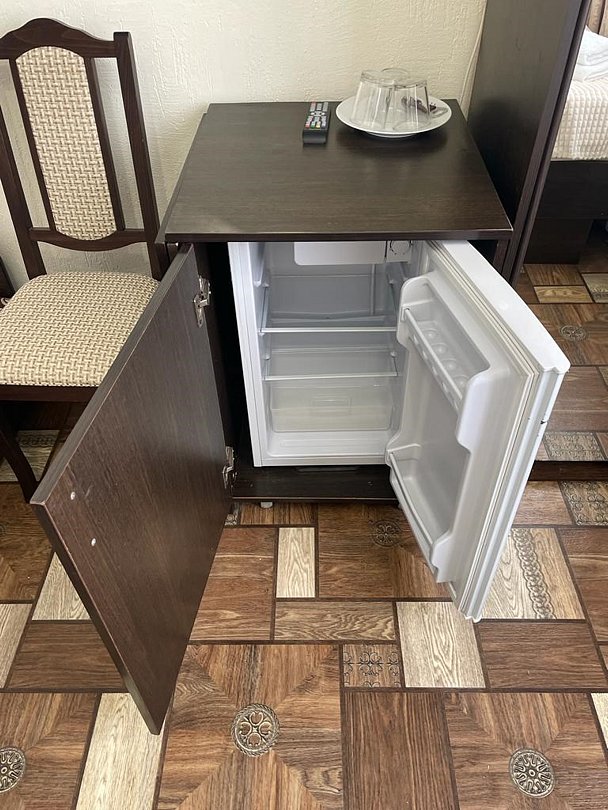 Wi-Fi, холодильник, кондиционер, светильник, фен, система безопасности, утюг, ванная комната, ванна, санузел, банные полотенца, двуспальная кровать, односпальная кровать, гладильная доска, тумбы, стулья, шкаф для одежды, вешалки, обеденный стол, зеркало, сейф, унитаз, отопление, вид во двор, стаканы, стул, стол, тумба, туалетные средства, туалет, сплит-система, сушилка для белья, цифровое тв, телевизор с плоским экраном, шкаф-купе, номер для некурящих, пуфик, уборка номера, вешалки-плечики, мыло, можно с питомцамиВ гостиничном номере