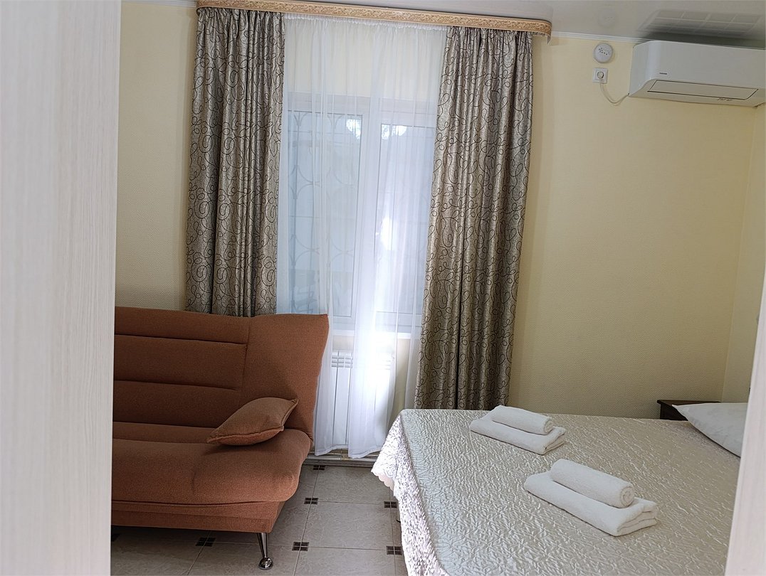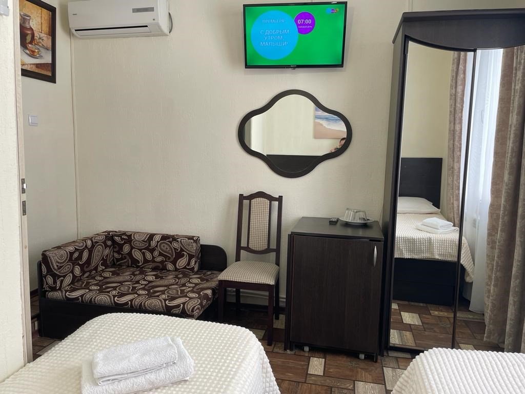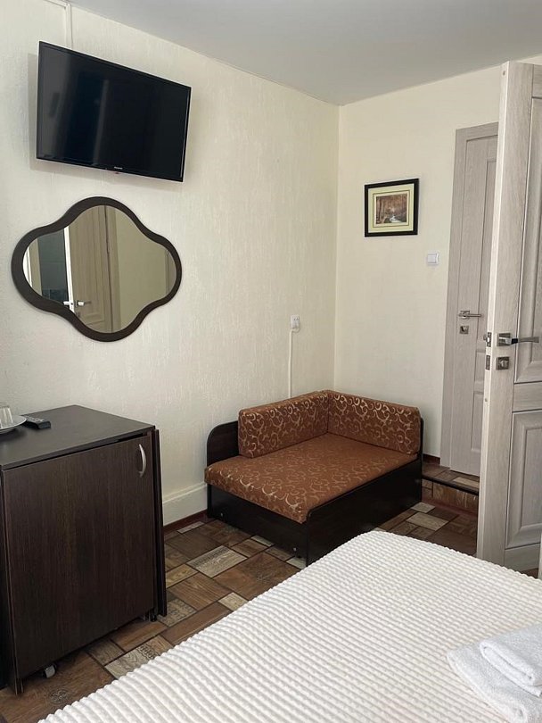 В номере свой: туалет, ванна, плоский тв, холодильник, кондиционер сплит система, WI-FI интернет, сейф в номере, две односпальные + двуспальная кровать, диван, стол, стулья, зеркало, белье, полотенце, мыло, фен, 20 цифровых каналов, уборка номера по требованию.Услуги и удобства