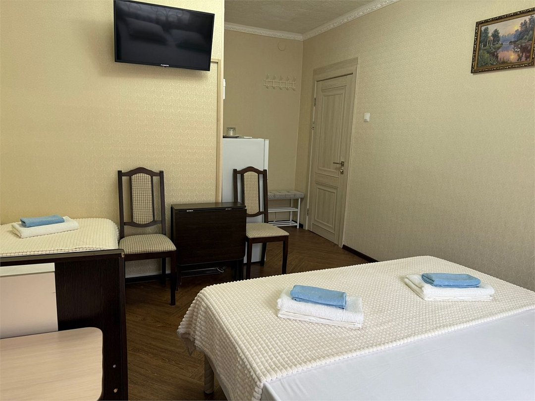 Ванна, туалет, плоский тв, сплит система кондиционер, холодильник, WI-Fi интернет, сейф в номере, шкаф купе, двуспальная кровать + доп место кресло кровать или две односпальные кровати и доп место, зеркало, белье, полотенце, мыло, фен, 20 цифровых каналов, уборка номера по требованию.Услуги и удобства