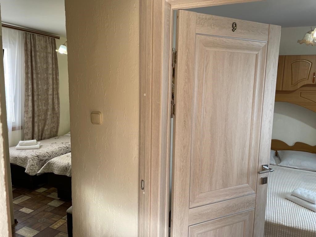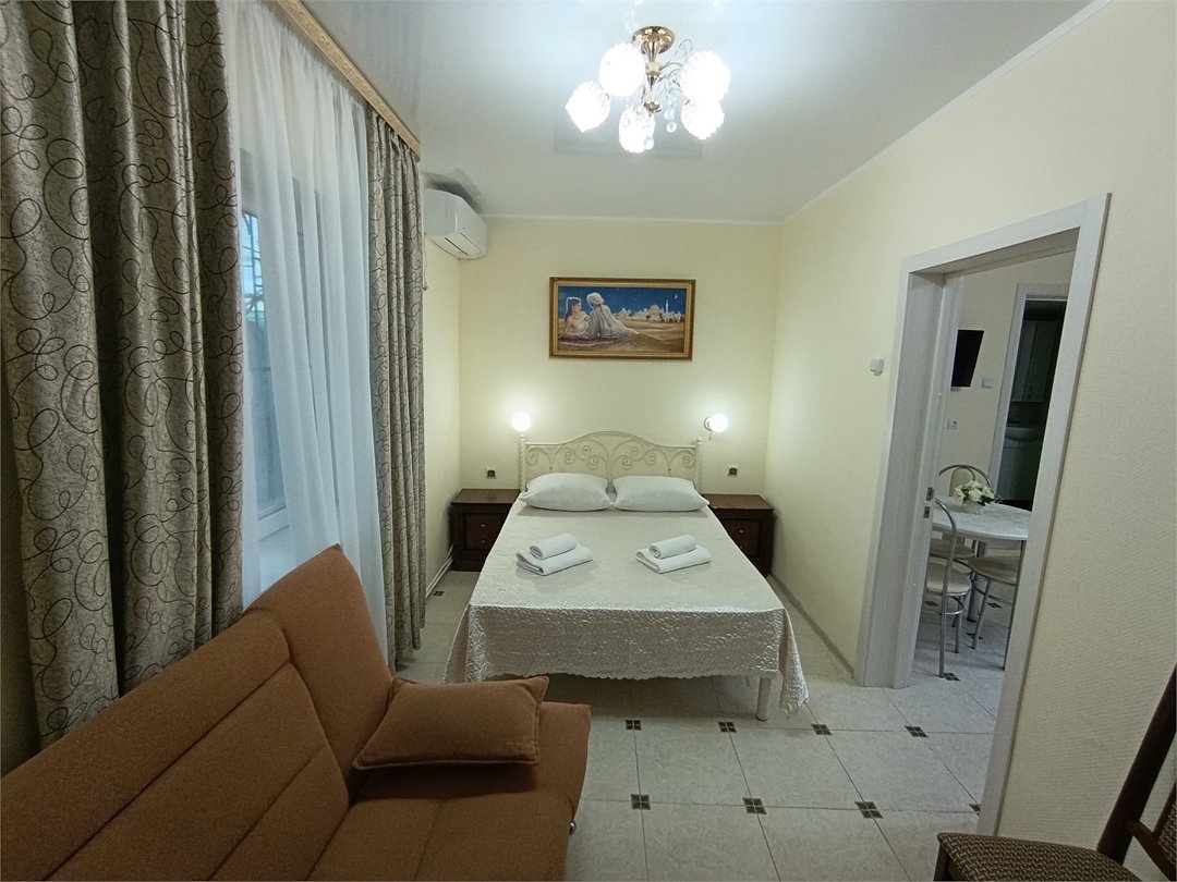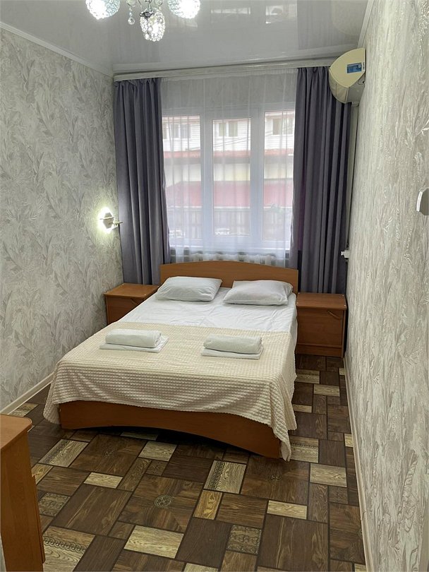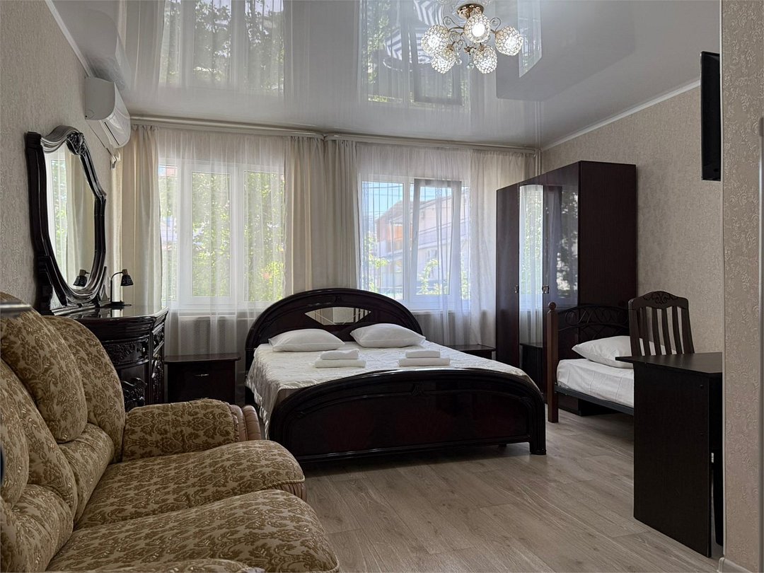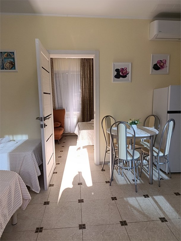 В номере двуспальная кровать, две односпальные кровати и диван кровать, туалет, душ, плоский тв в каждой комнате, холодильник, кондиционер сплит система, WI-FI интернет, сейф в номере, стол обеденный уголок, стулья, зеркало, белье, полотенце, мыло, фен, 20 цифровых каналов, уборка номера по требованию.Услуги и удобства