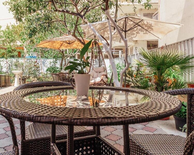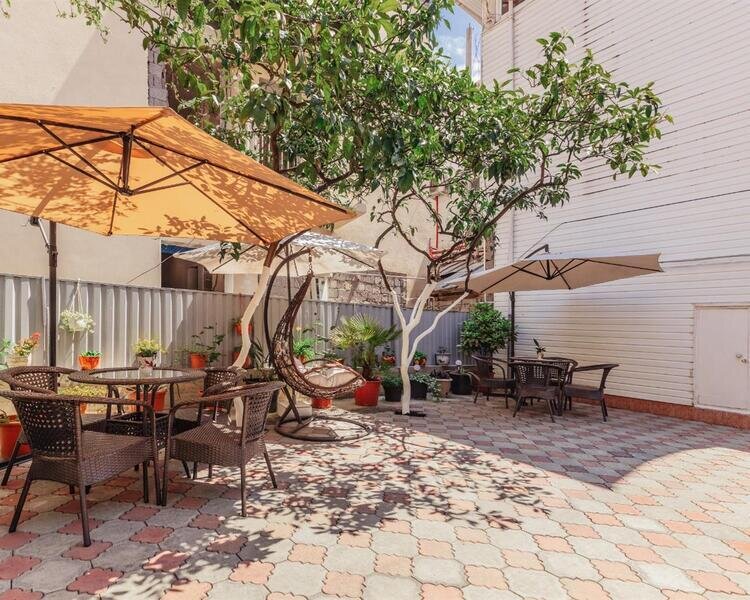 На территории гостевого дома есть красивый сад с фруктовыми деревьями, зона отдыха, общая кухня и Wi-Fi.