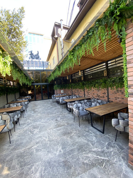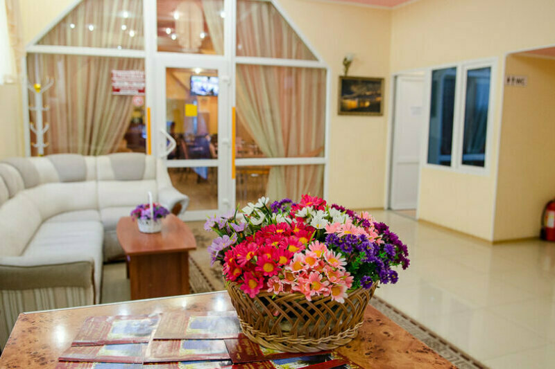 На благоустроенной территории расположился комплекс отеля, состоящий из 5-этажного корпуса и здания кафе-столовой с 80 посадочными местами, где подают вкусные и разнообразные блюда. Предлагается множество блюд, приготовленных на мангале.