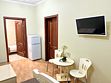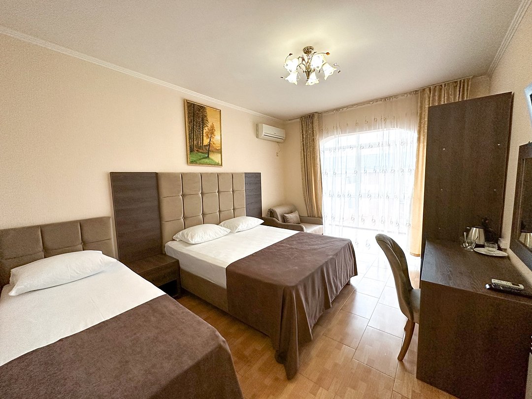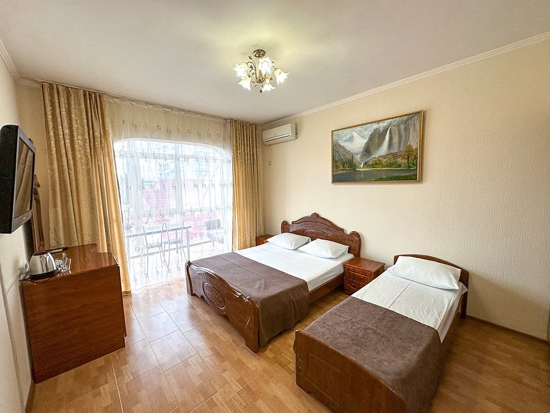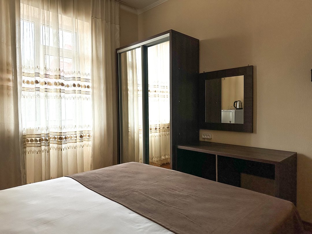 Гостевой дом занимает 6-этажное здание с лифтом. Интерьер комнат выполнен в современном стиле. Для удобства гостей представлены номера с кондиционерами и современными ЖК-телевизорами, а также собственной ванной комнатой. Отдыхающим предоставляются полотенца и туалетные принадлежности. В комнатах есть чайники и мини-холодильники. Беспроводной интернет доступен на всей территории гостевого дома.
