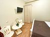 2-спальная кровать,прикроватные тумбочки, стол, стул, шкаф, зеркало, с/у, душ, ТВ.
