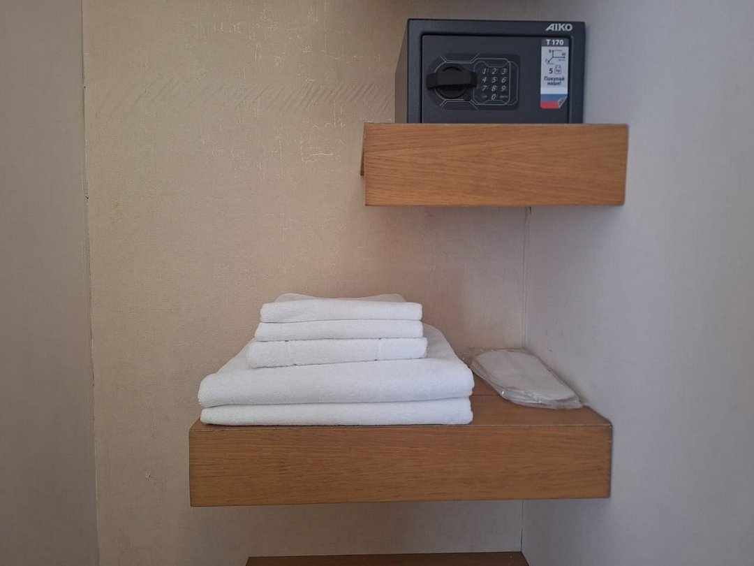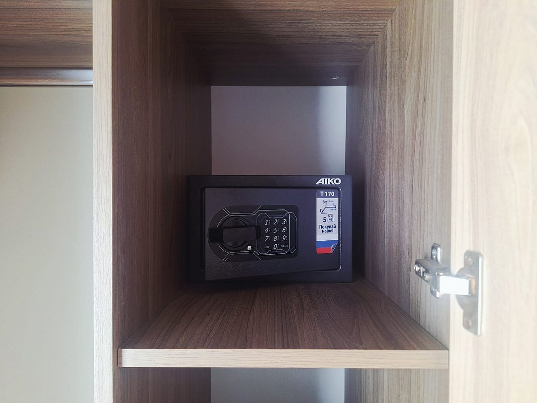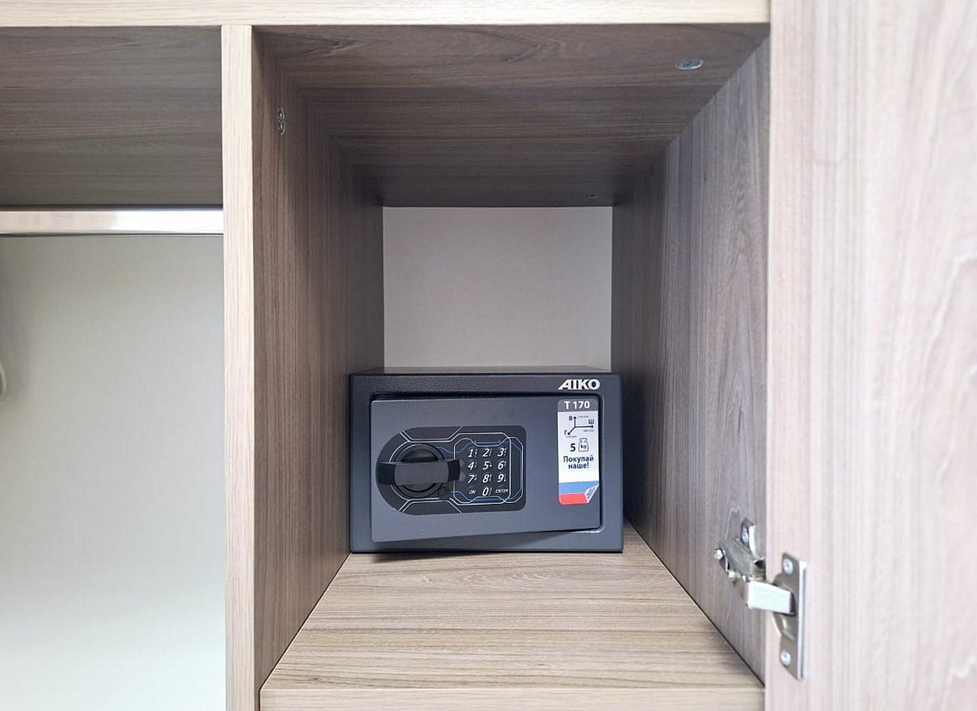 Имеется сейф, антимоскитная сетка, плотные шторы, телевизор, кондиционер, шкаф, вешалка, зеркало, столик журнальный, посуда, столовые принадлежности, холодильник, стулья, корзина для мусора.