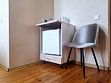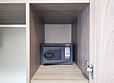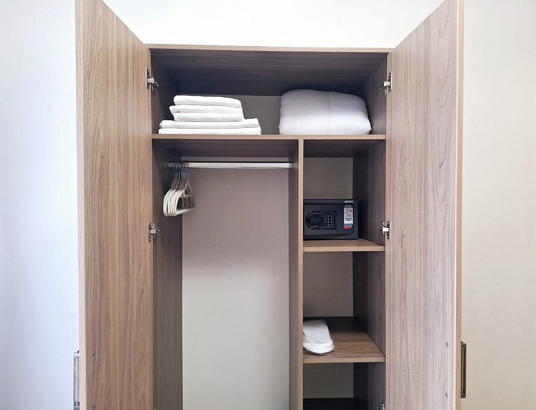 Имеется сейф, антимоскитная сетка, плотные шторы, телевизор, кондиционер, шкаф, вешалка, зеркало, стол рабочий, посуда, столовые принадлежности, чайник, холодильник, стулья, корзина для мусора.
