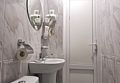 Индивидуальная ванная комната: душ, раковина, туалет, фен, ванные принадлежности.