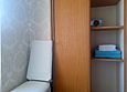 Имеется антимоскитная сетка, плотные шторы, сейф, телевизор, кондиционер, шкаф, вешалка, зеркало, стол рабочий, обеденный и журнальный столик, столовые приборы, посуда, холодильник, стулья, корзина для мусора.