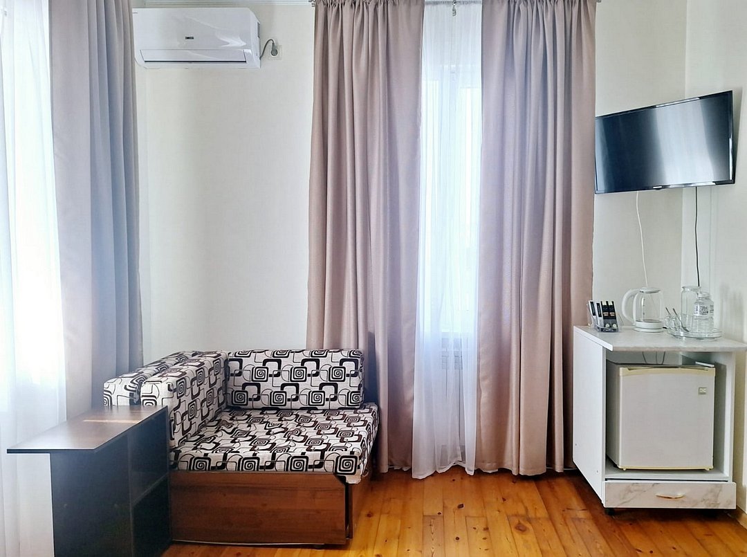 Комфорт площадью 16 кв. м с видом во двор. Подходит для размещения 3 человек. (2 основных места, 1 дополнительные).