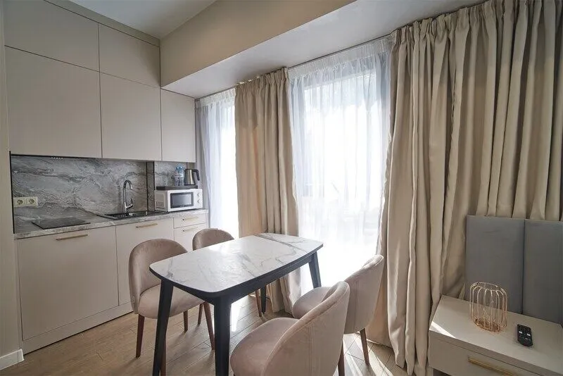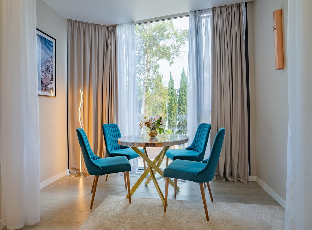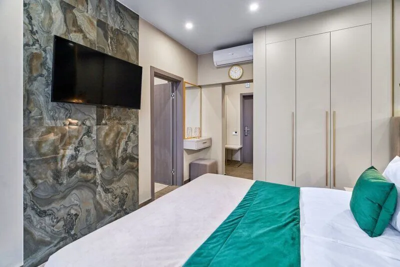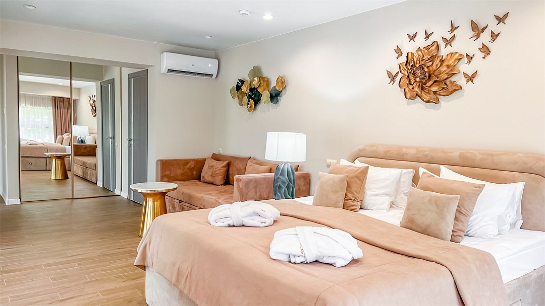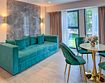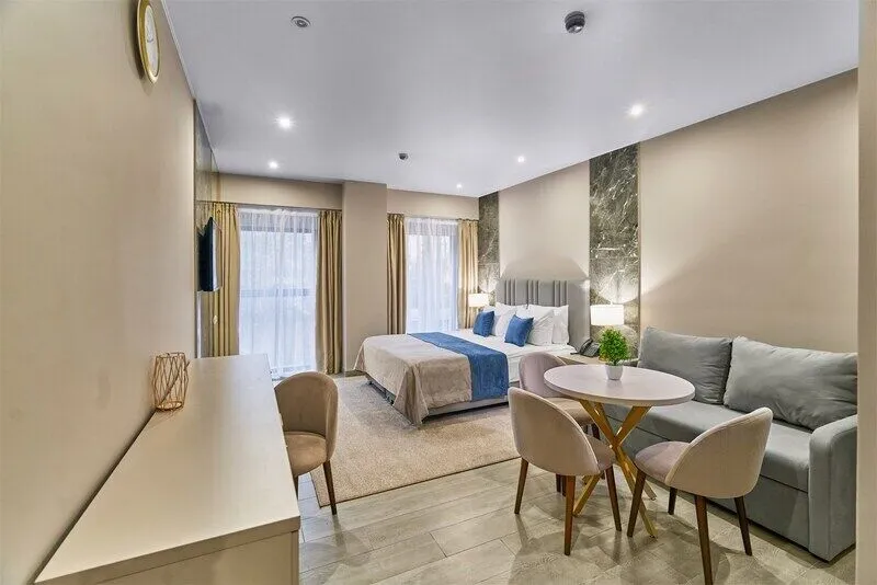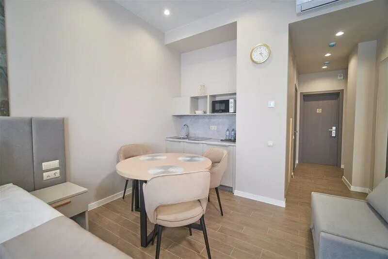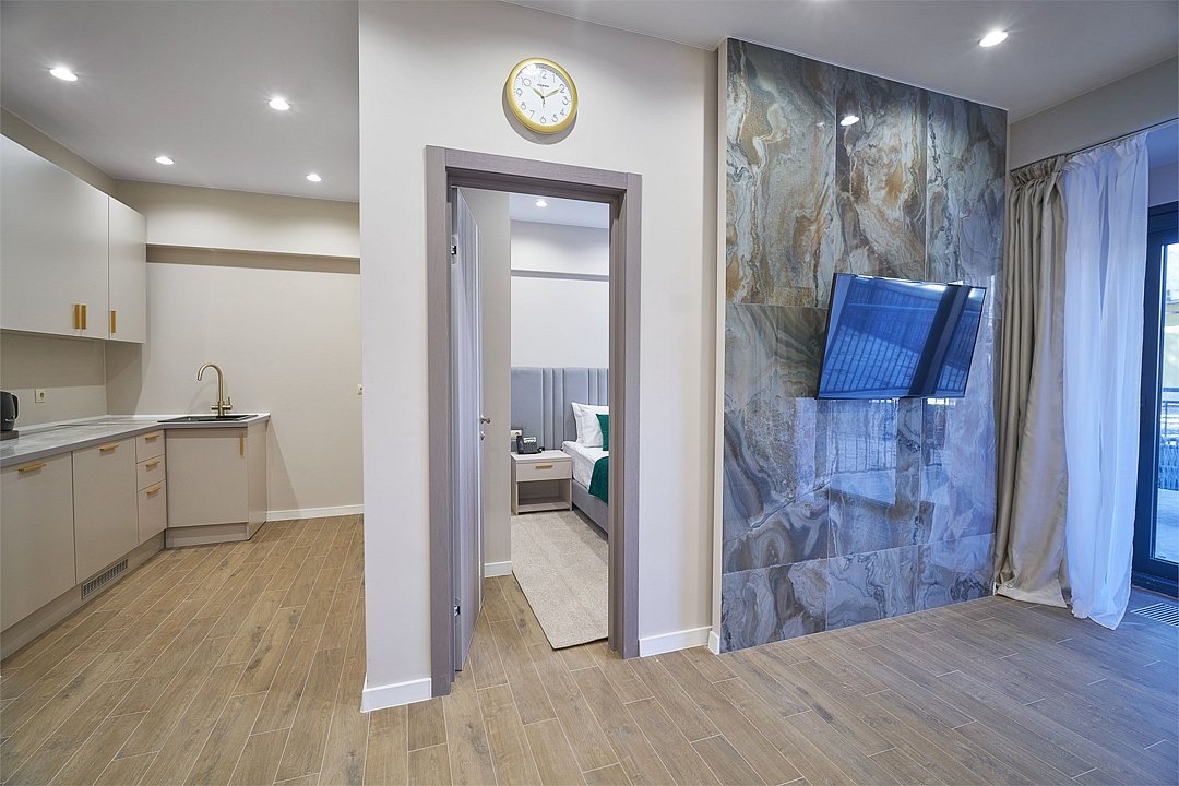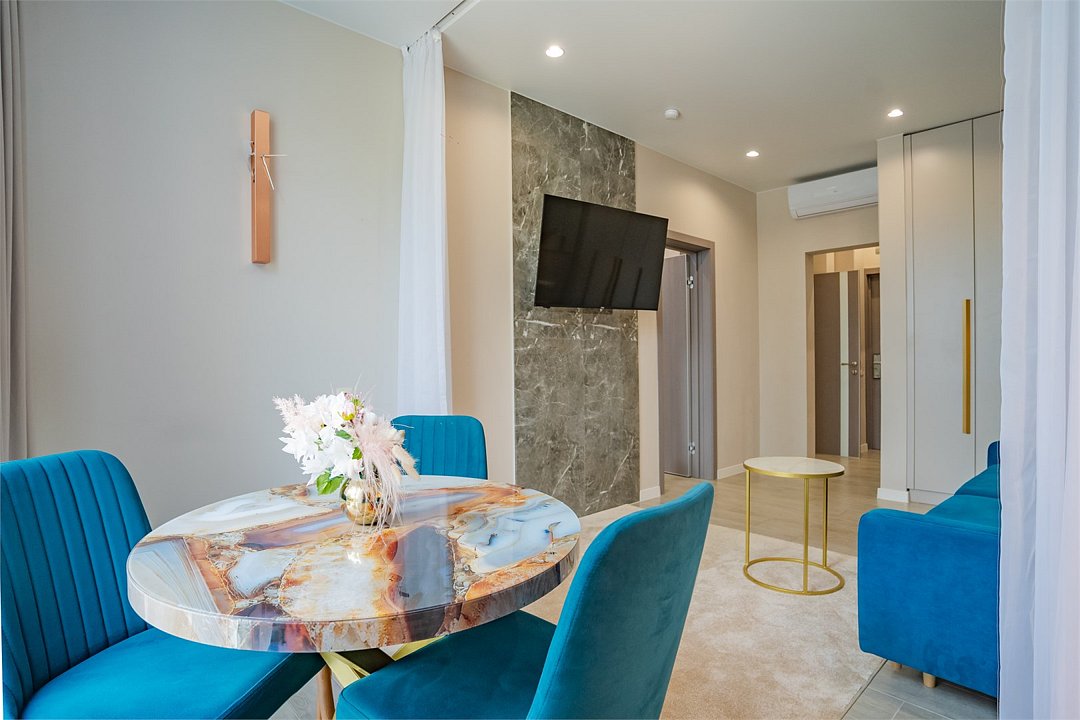 Во всех апартаментах присутствует современный дизайнерский интерьер с полным набором удобств, включая Wi-Fi, кондиционирование, телевизор, чайную станцию, холодильник, фен и банные принадлежности.