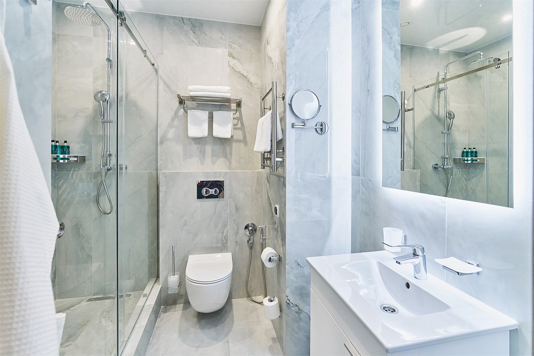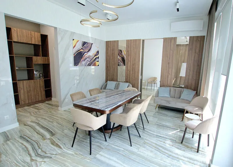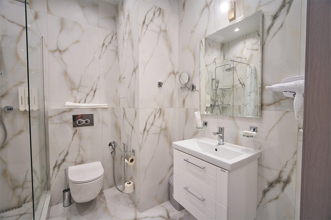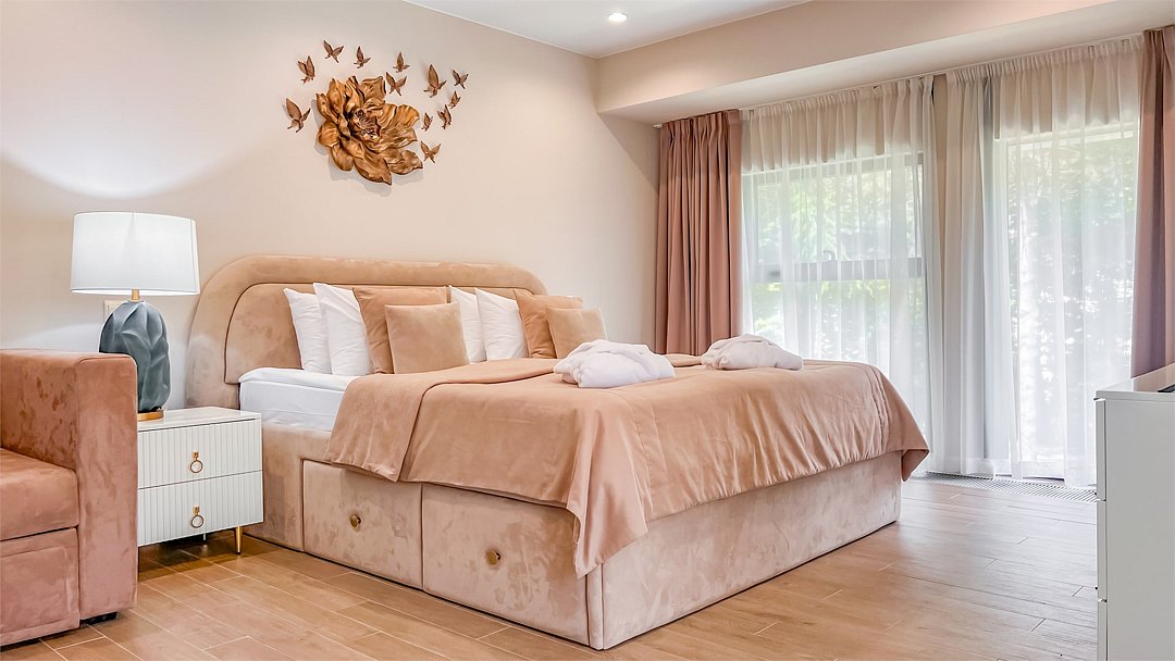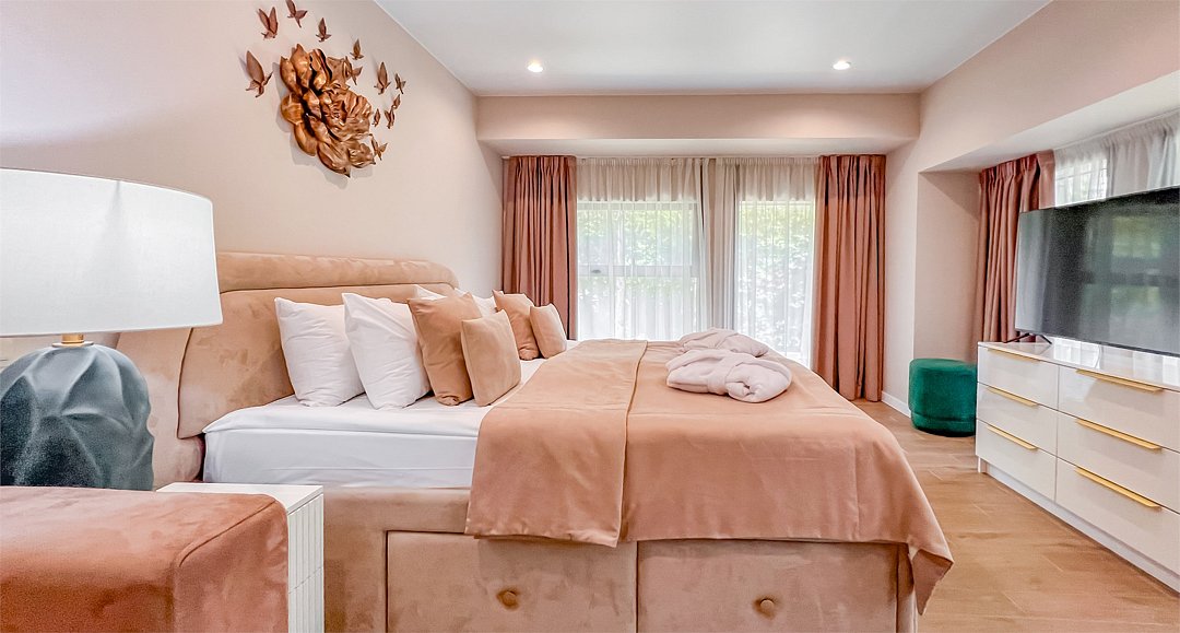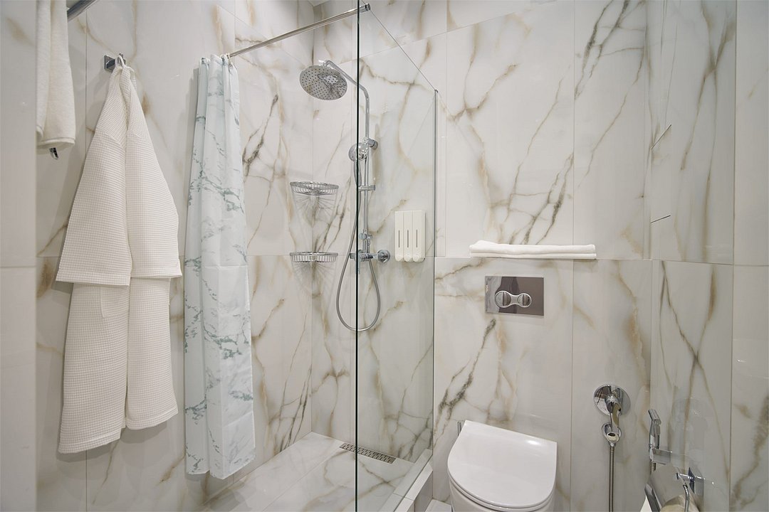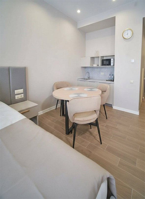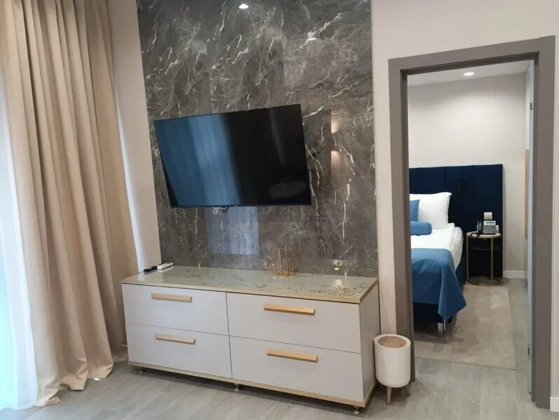 Во всех апартаментах присутствует современный дизайнерский интерьер с полным набором удобств, включая Wi-Fi, кондиционирование, телевизор, чайную станцию, холодильник, фен и банные принадлежности.