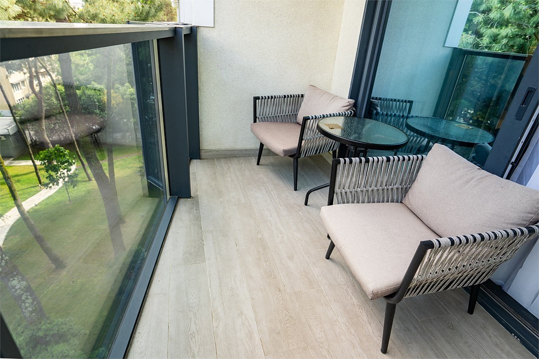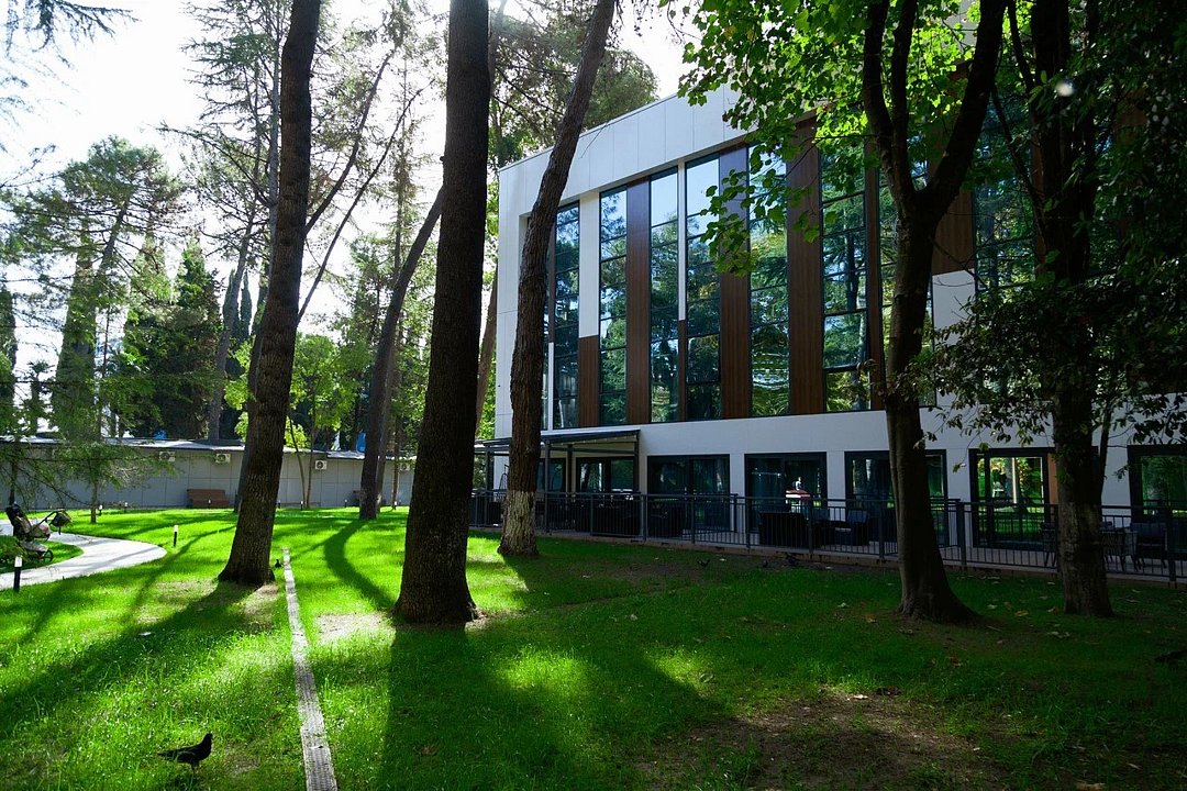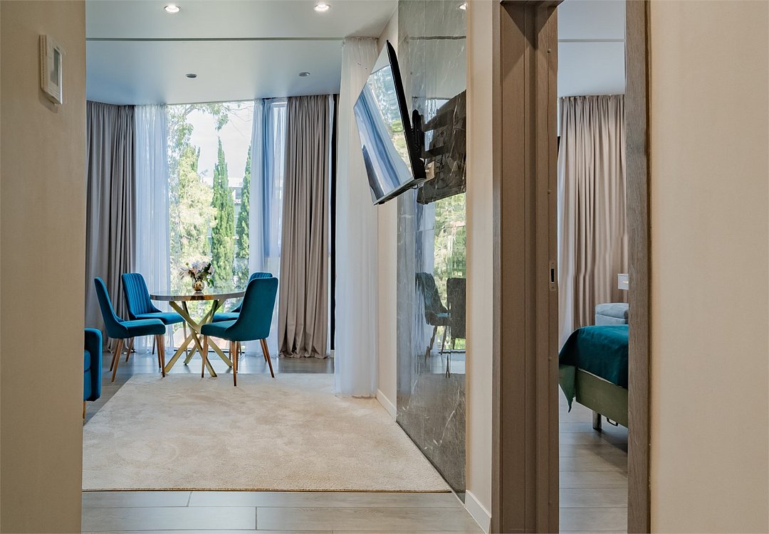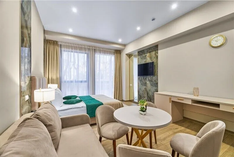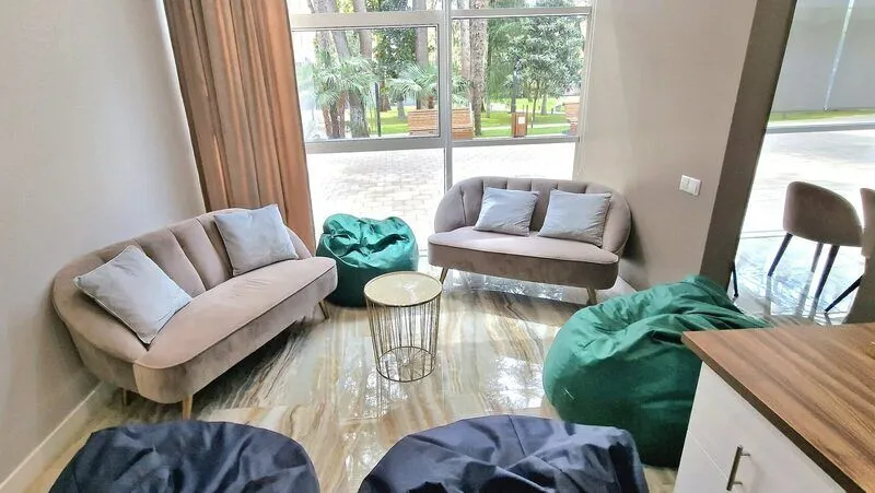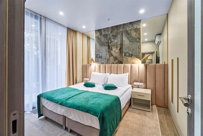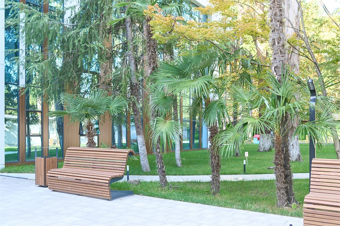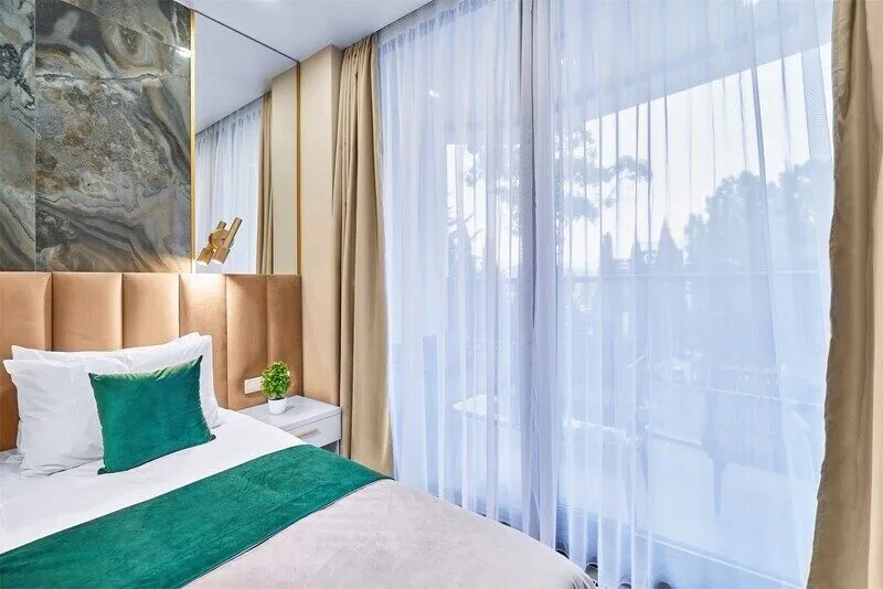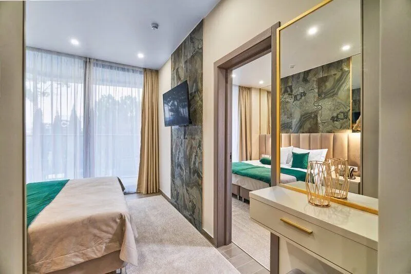 Отель с современным дизайном находится в самом центре Адлера, всего в 950 метрах от моря. Гостиничный комплекс уютно расположен в собственной зеленой парковой зоне, окруженной гималайскими соснами, эвкалиптами и кипарисами. Он предлагает 167 апартаментов с дизайнерским ремонтом и отделкой из высококачественных премиальных материалов.