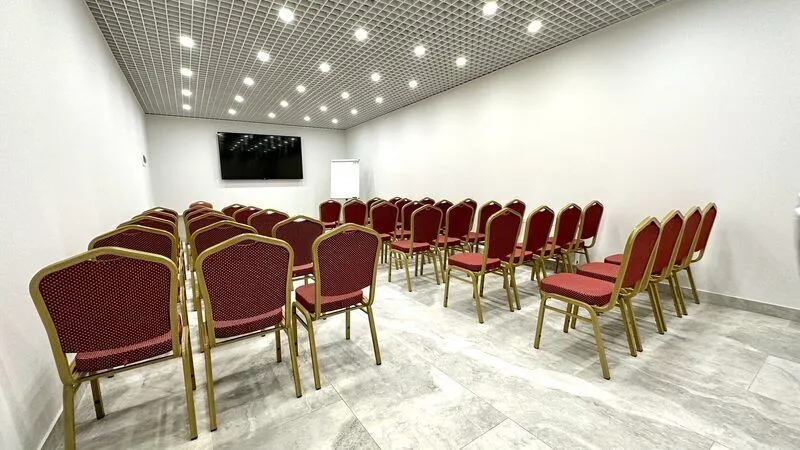 - две смежные закрывающиеся переговорные комнаты площадью 26 м2 и 18 м2. Отлично подойдут для проведения переговоров, презентаций, записи вебинаров и онлайн-конференций, а также как офис для организаторов мероприятия на территории отеля.