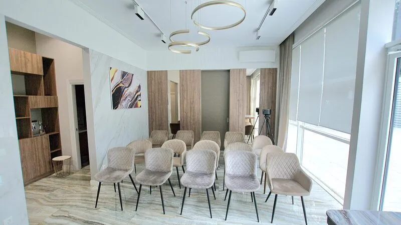 Переговорные комнаты оснащены мини-кухней и собственным санузлом, а также всем необходимым для событий различного формата и кофе-брейков: