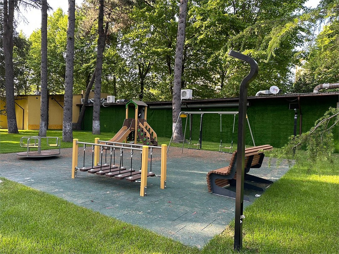 На территории отеля расположена современная детская площадка. Здесь есть всё необходимое для активного и интересного детского отдыха: качели, горка, карусель, подвесной мостик - отличный набор чтобы весело провести время со сверстниками. Рядом с площадкой есть лавочки, на которых смогут расположиться родители.