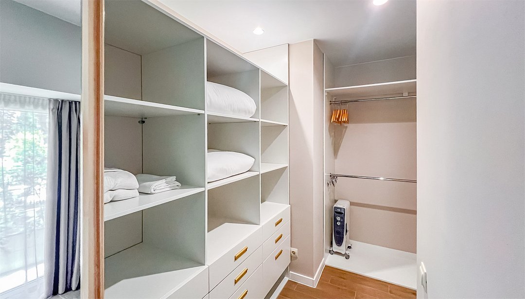 двухспальная кровать/2 односпальные кровати, шкаф, тумбы, телевизор, чайная и гладильная станции, сушилка для белья, холодильник, микроволновка, обеденная зона, диван.