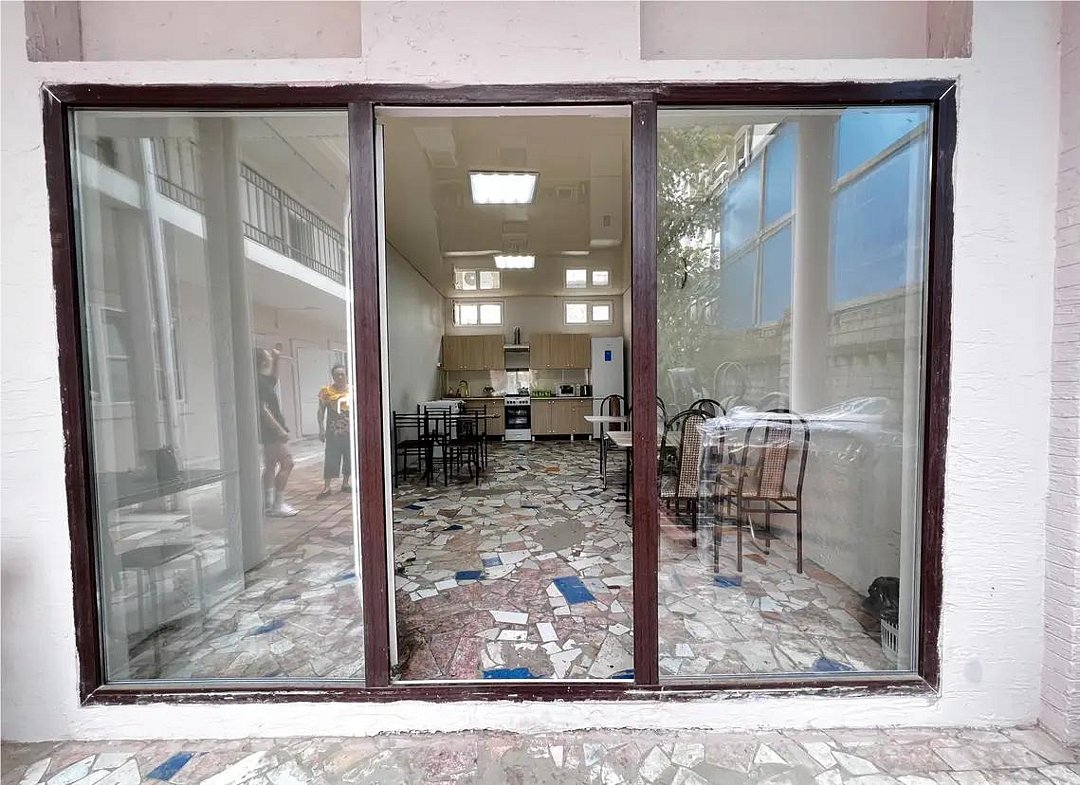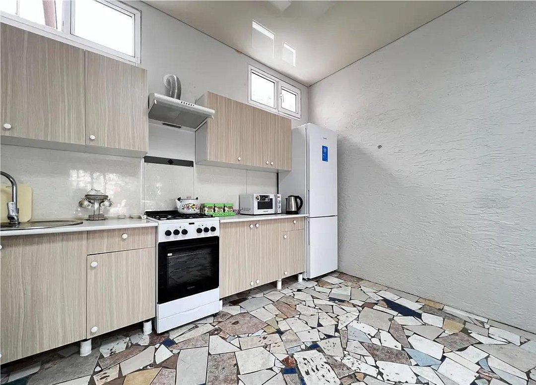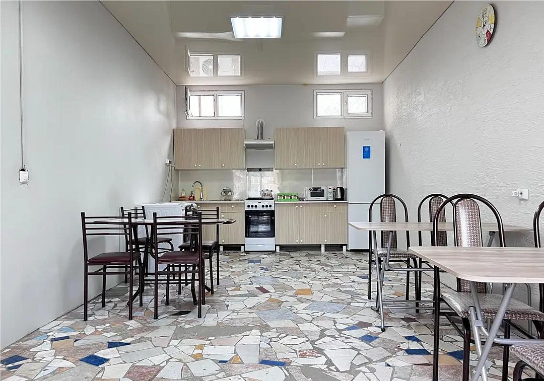 На просторной общей кухне, которая оборудована новой техникой и посудой, можно приготовить любимые блюда, Во дворе дома расположена уютная зона отдыха.