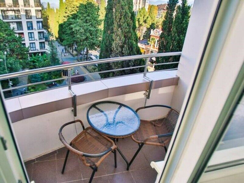 Гостиница находится в центре Адлера в окружении живописных деревьев.