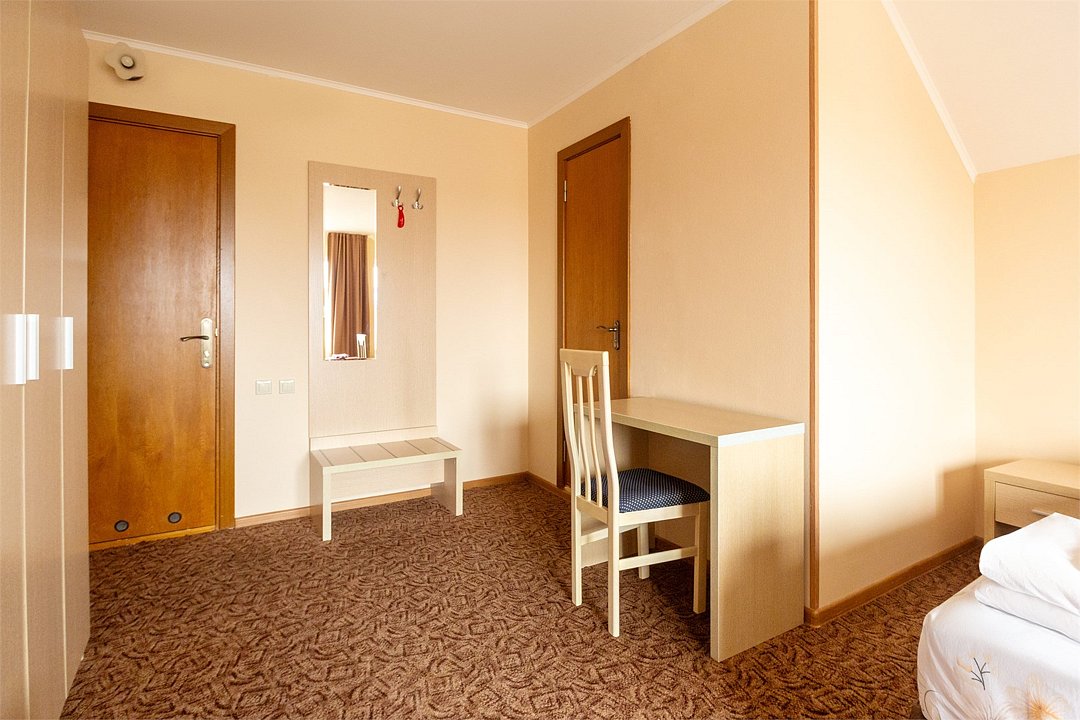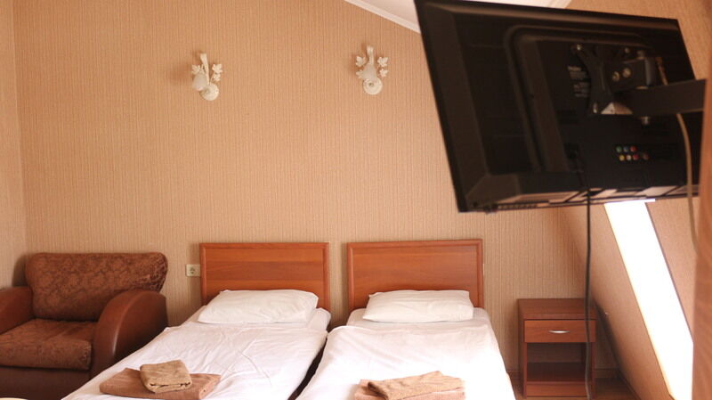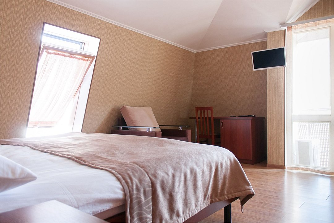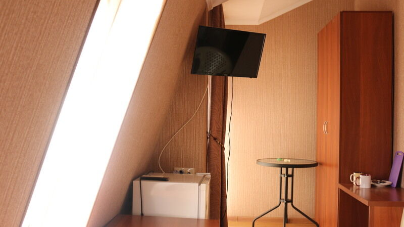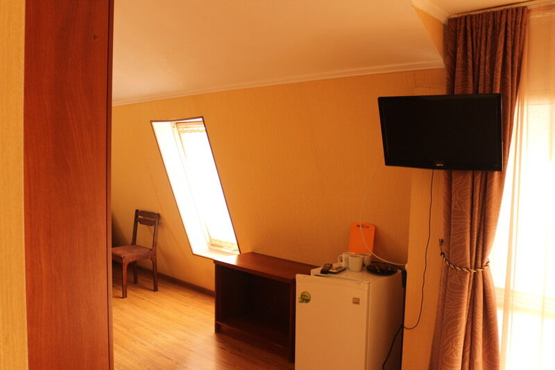 Стандартный мансардный номер расположился на 4 этаже здания. В номере есть все необходимы удобства, удобная кровать, чистое постельное белье, телевизор, холодильник, фен, балкон. На этаже можно воспользоваться микроволновой печкой, чайником и утюгом. Вид с окон и балкона на улицу Ленина.Услуги и удобства